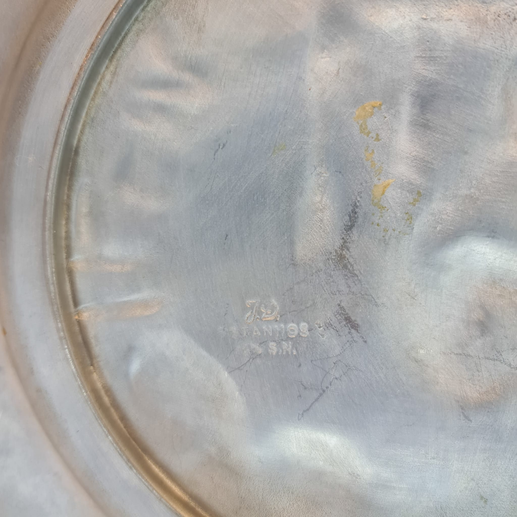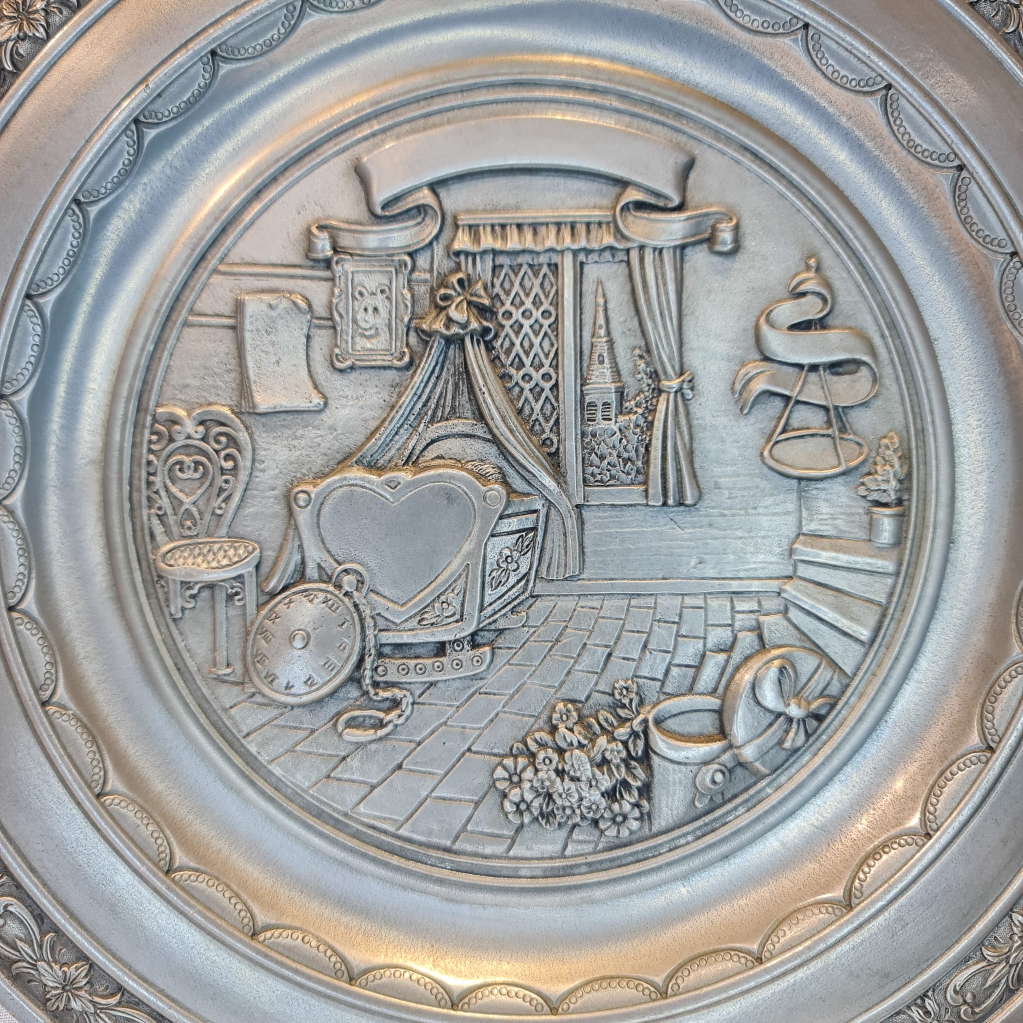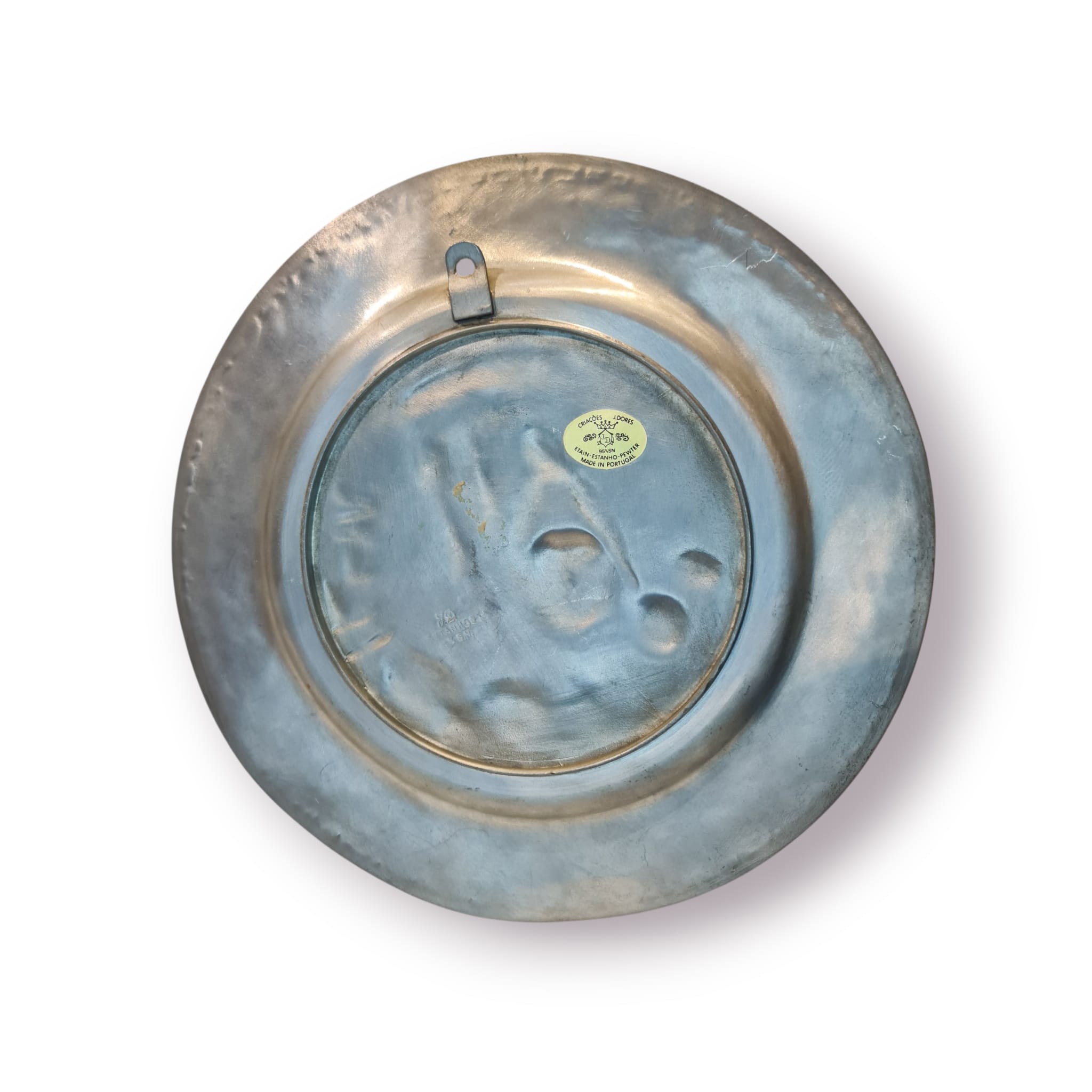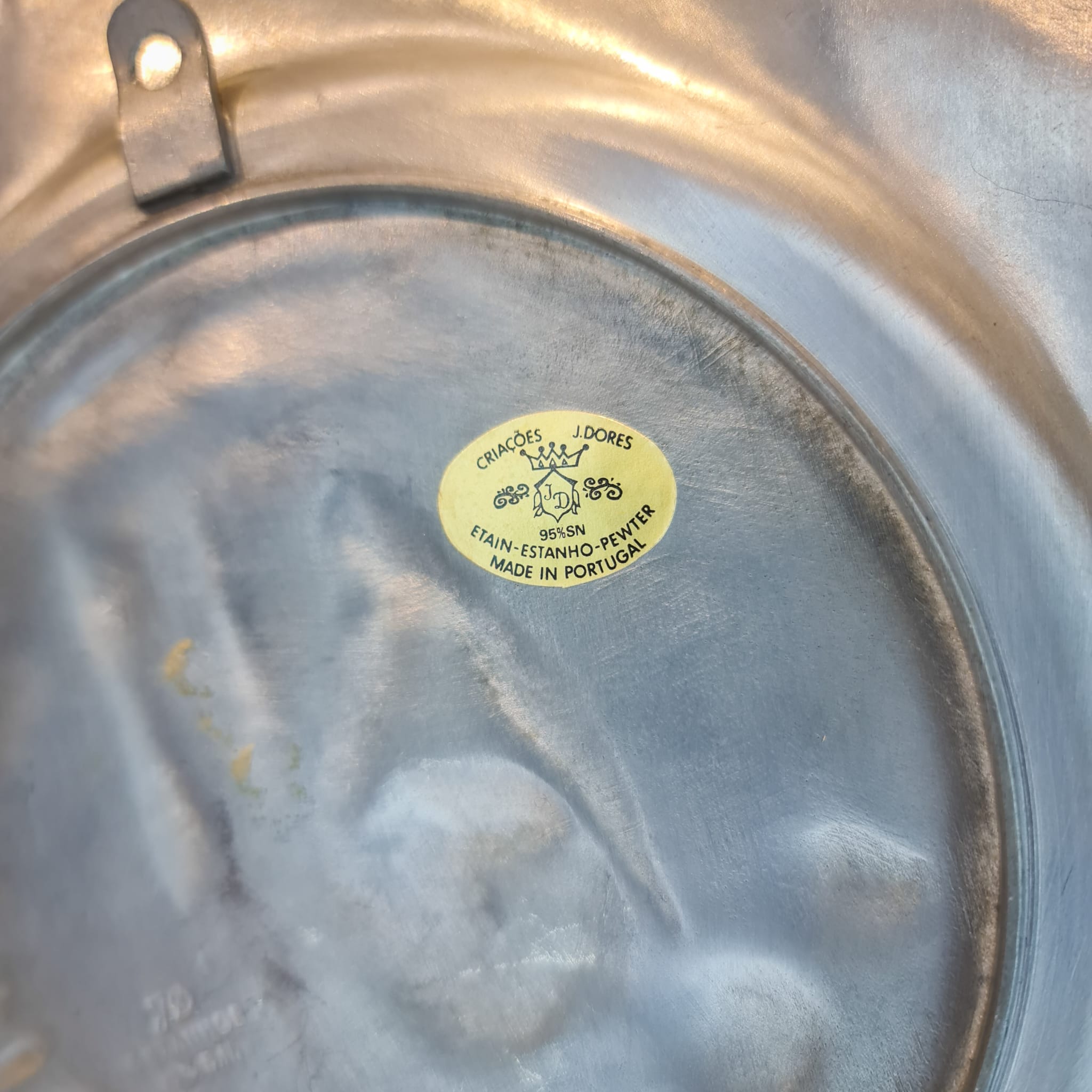 Prato decorativo em estanho 95% (95% Sn) da marca portuguesa Criações J. Dores, conhecido fabricante de peças artísticas em estanho.