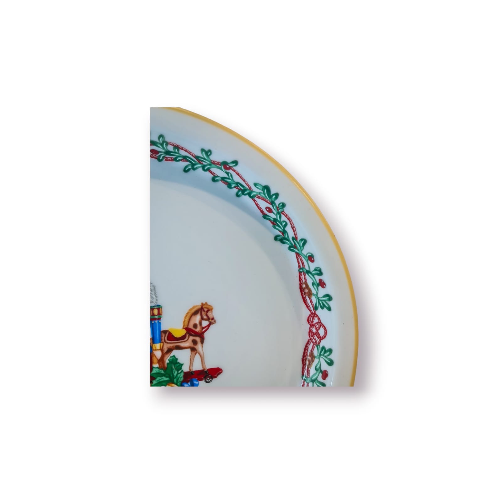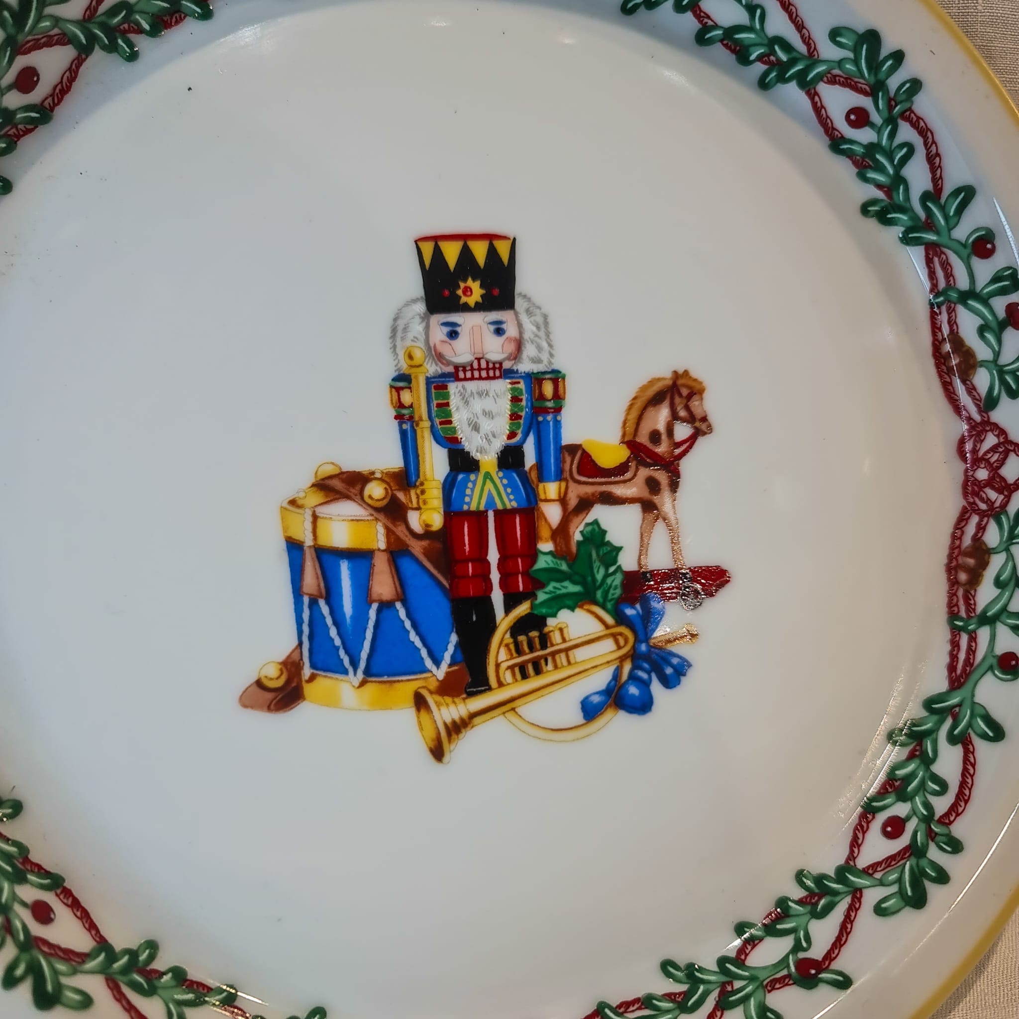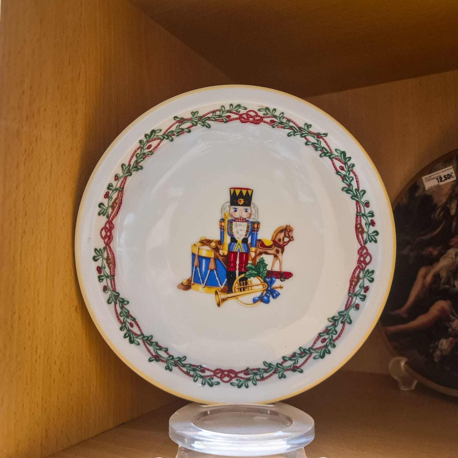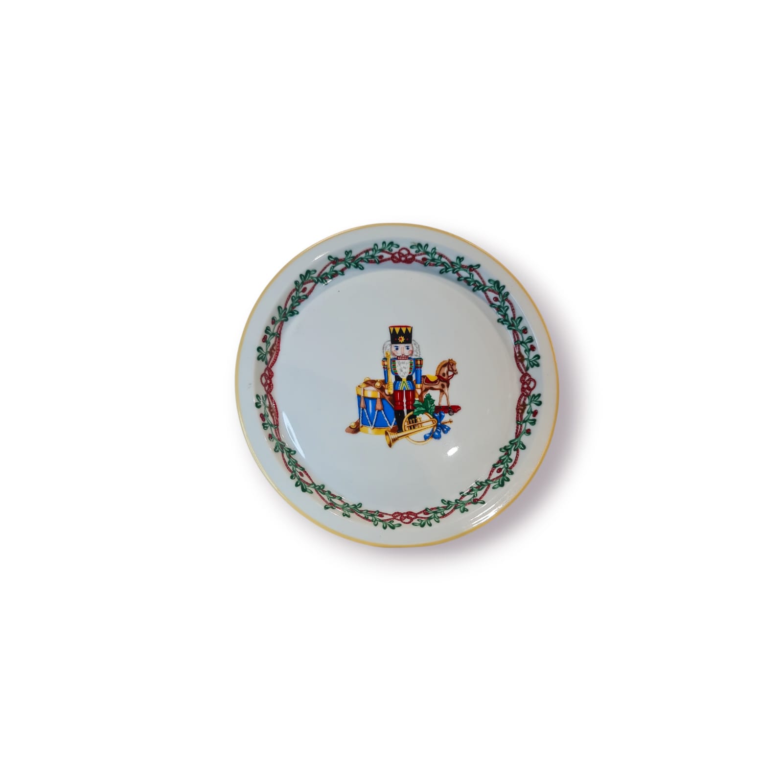 Elegante prato decorativo de Natal em porcelana SPAL, produzido em Portugal, com decoração clássica inspirada no tradicional soldadinho Quebra-Nozes, símbolo das festividades natalícias europeias.