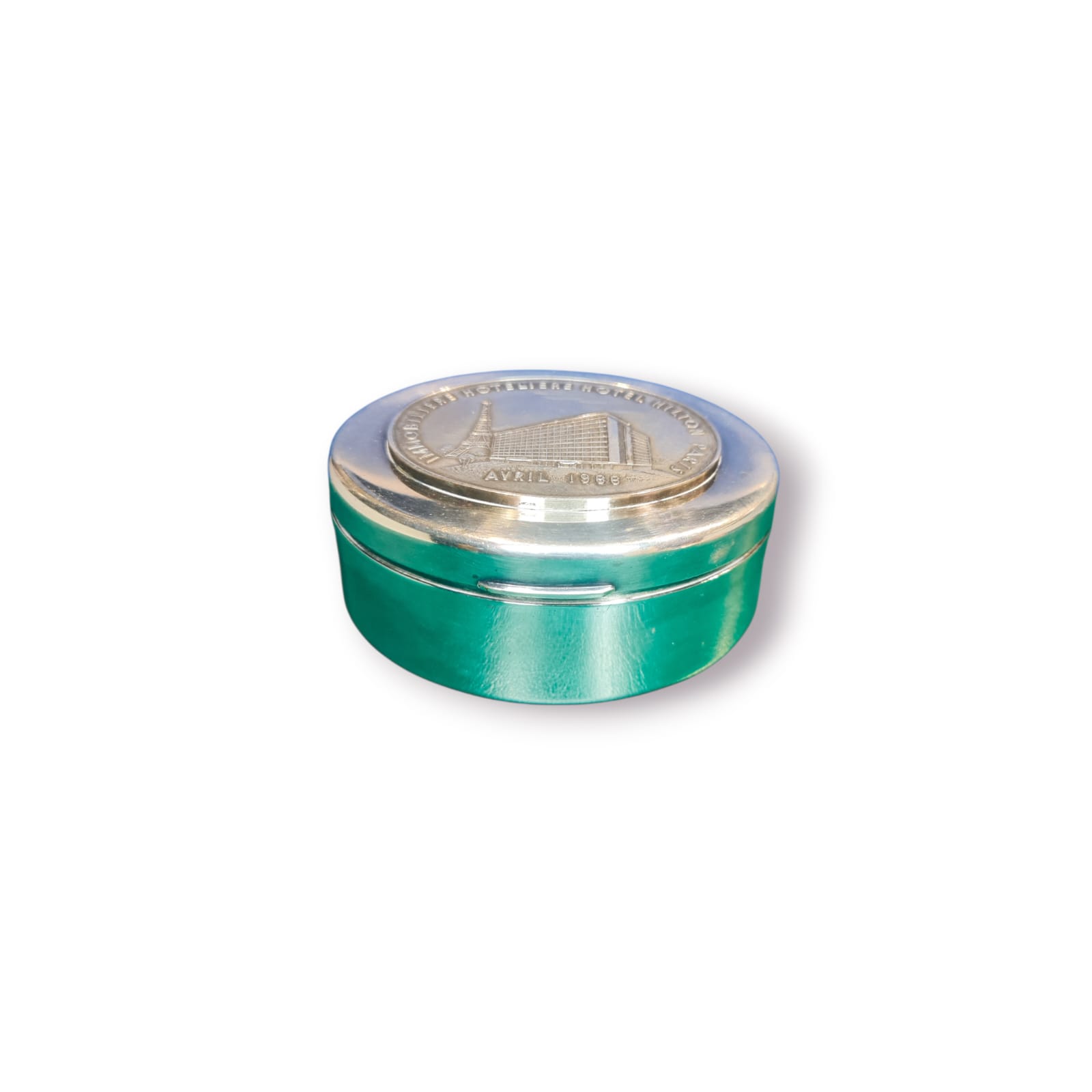 Esta elegante caixa comemorativa do Hotel Hilton Paris, datada de abril de 1966, é uma peça original em Prata de Lei 925, conforme contraste visível na própria estrutura.