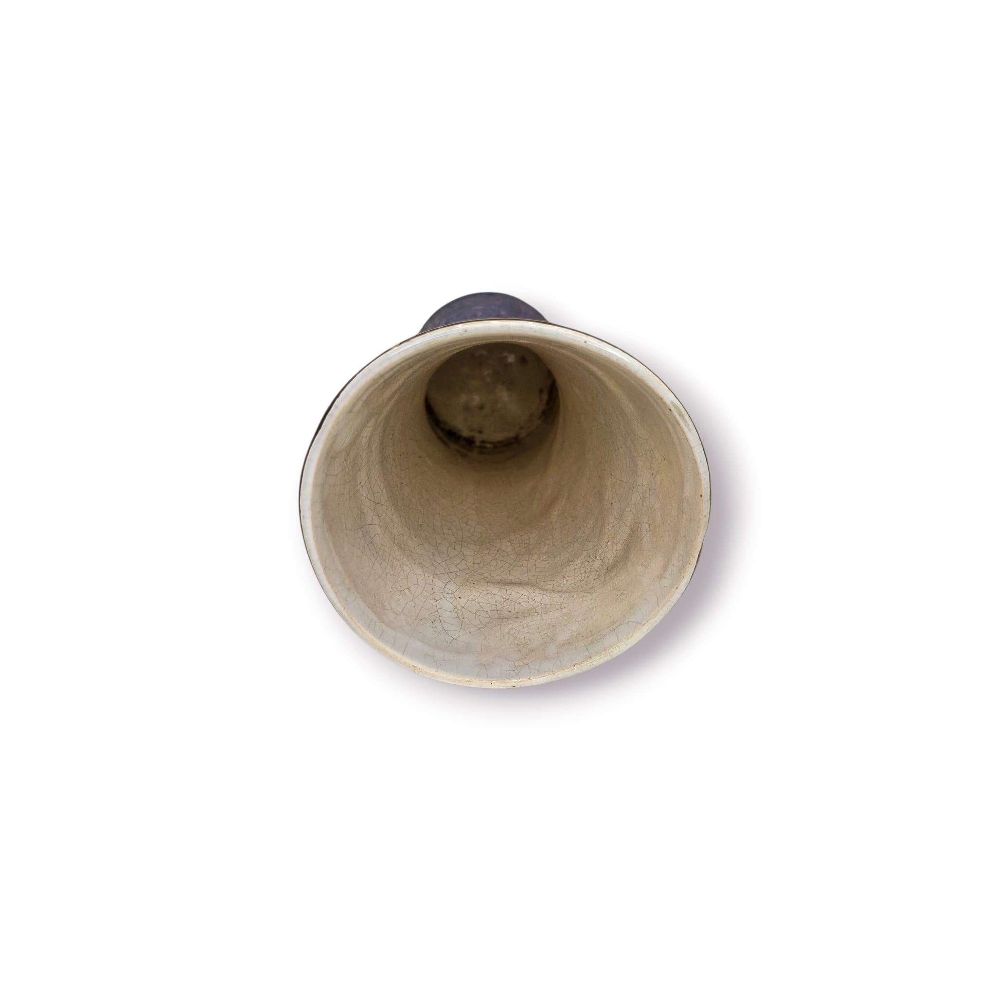 O acabamento craquelado interior é característico de cerâmicas antigas, conferindo-lhe personalidade e autenticidade decorativa.