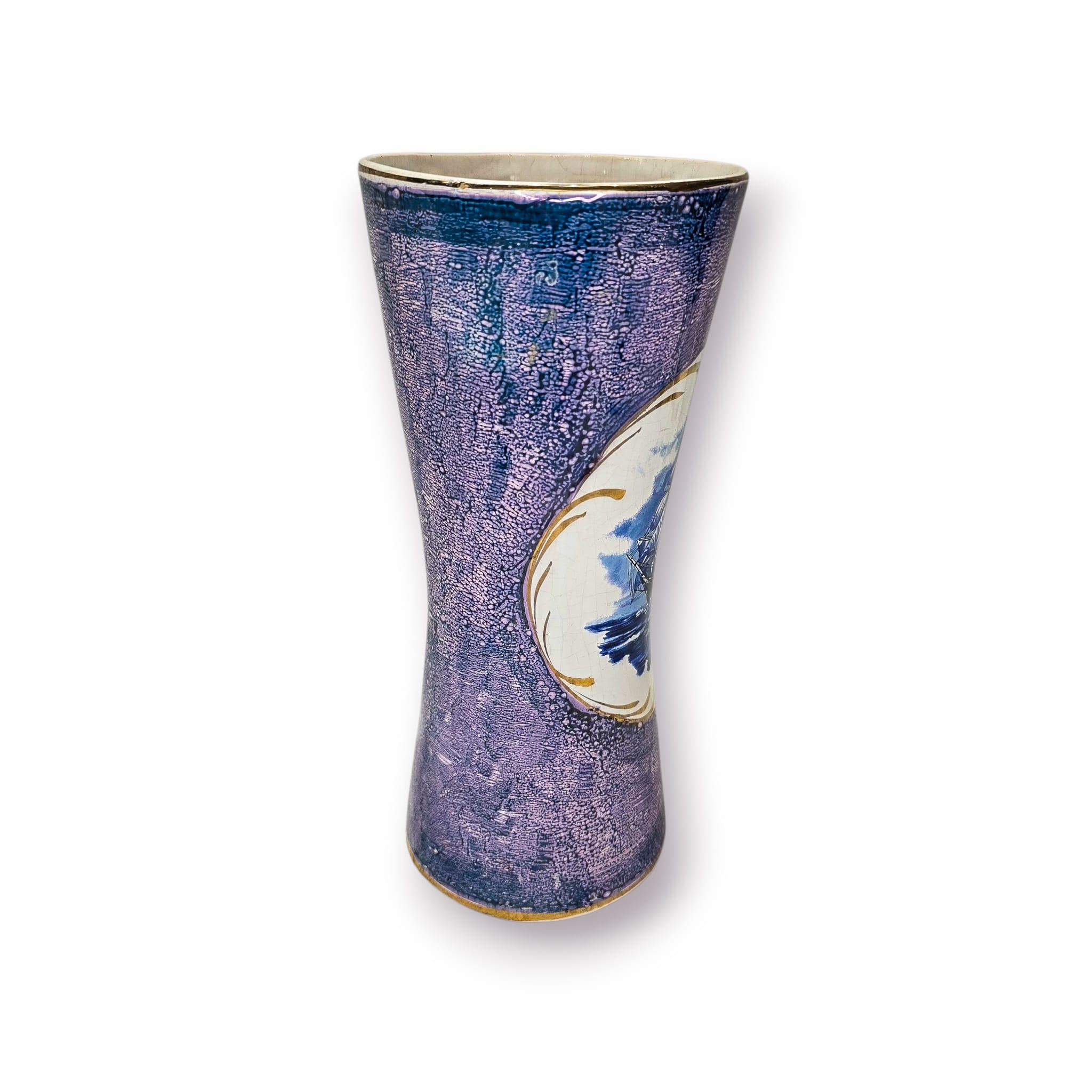 🏺 Vaso Decorativo Náutico com Navio à Vela – 27cm | Cerâmica Texturada Tons Roxo/Azul