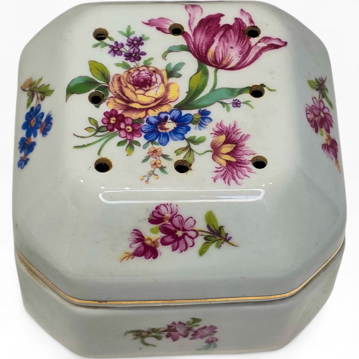 💐 Caixa Toucador Perfurada Vista Alegre | Porcelana Floral | 8x8cm | Alt. 6cm