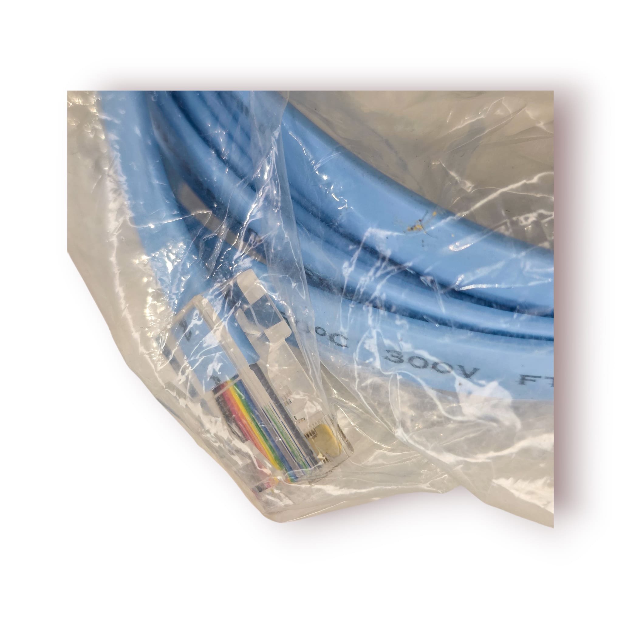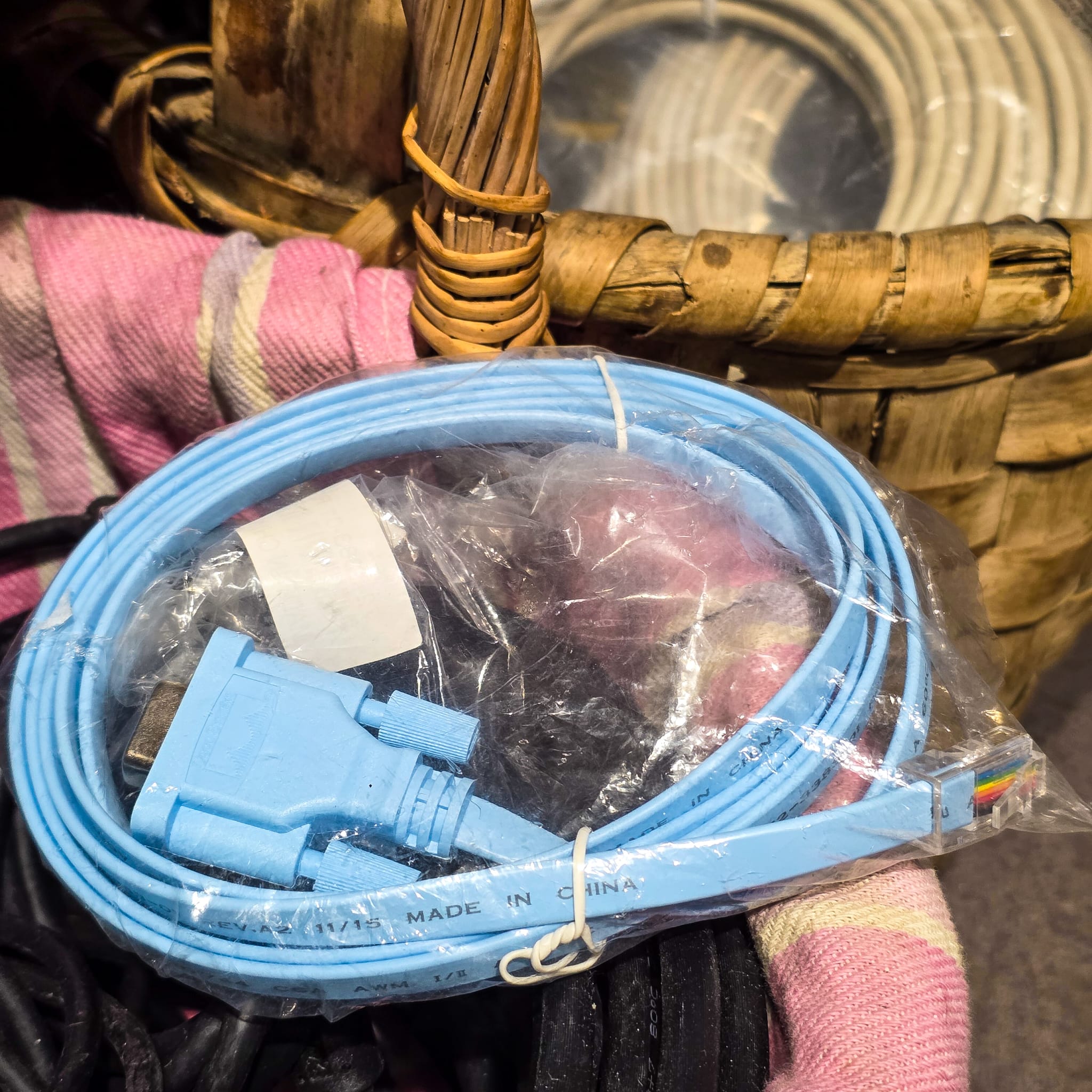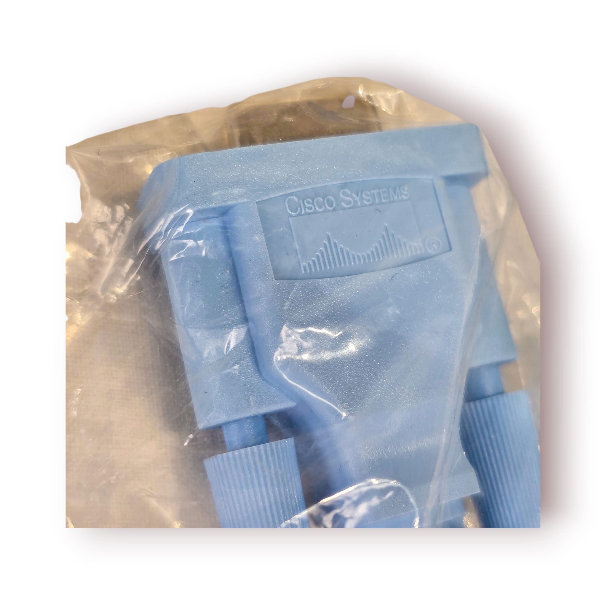 Cabo técnico original utilizado para configuração e manutenção de equipamentos de rede Cisco.