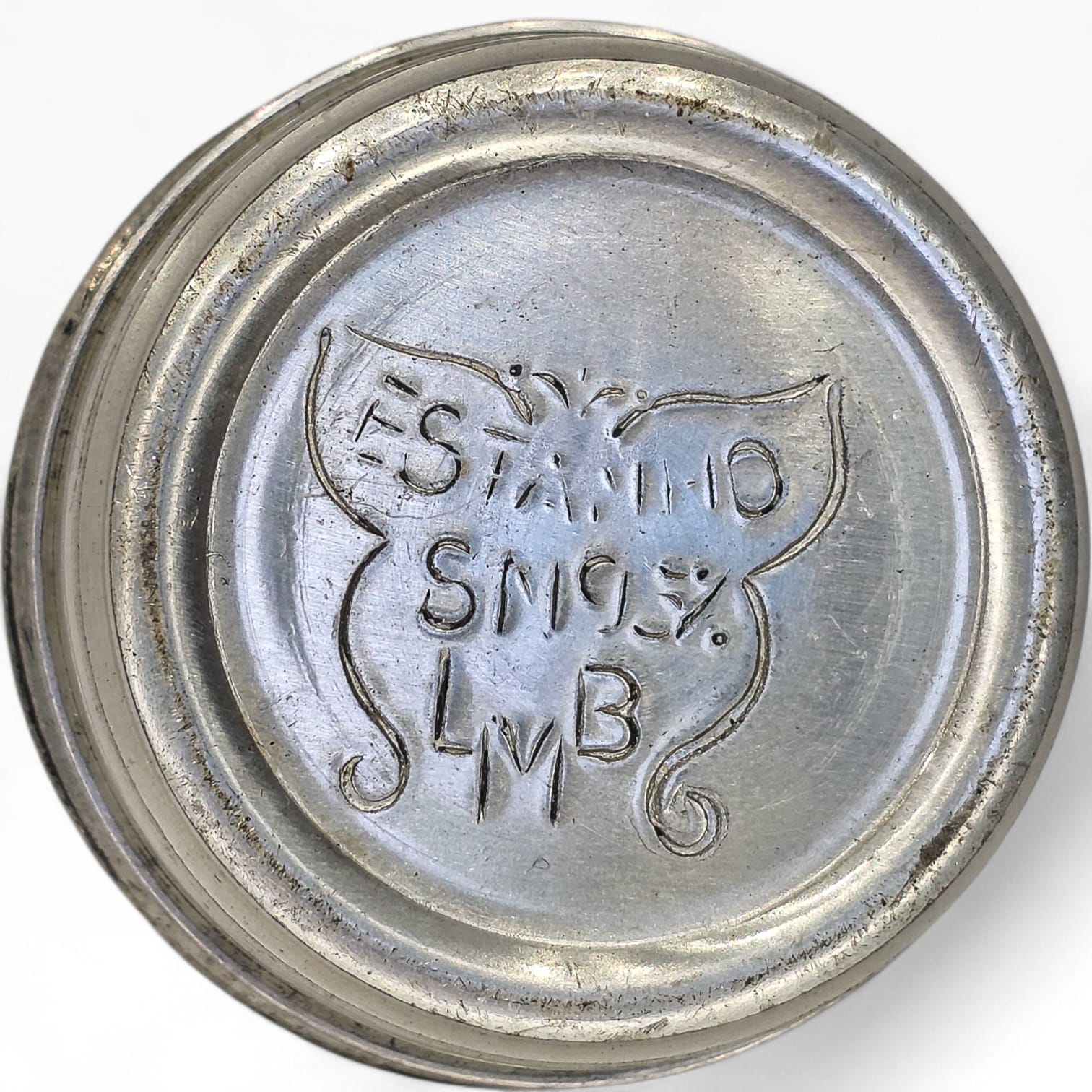 🕊 Caixa Redonda Estanho SM95% | Relevo Art Nouveau | LMB | 5 cm