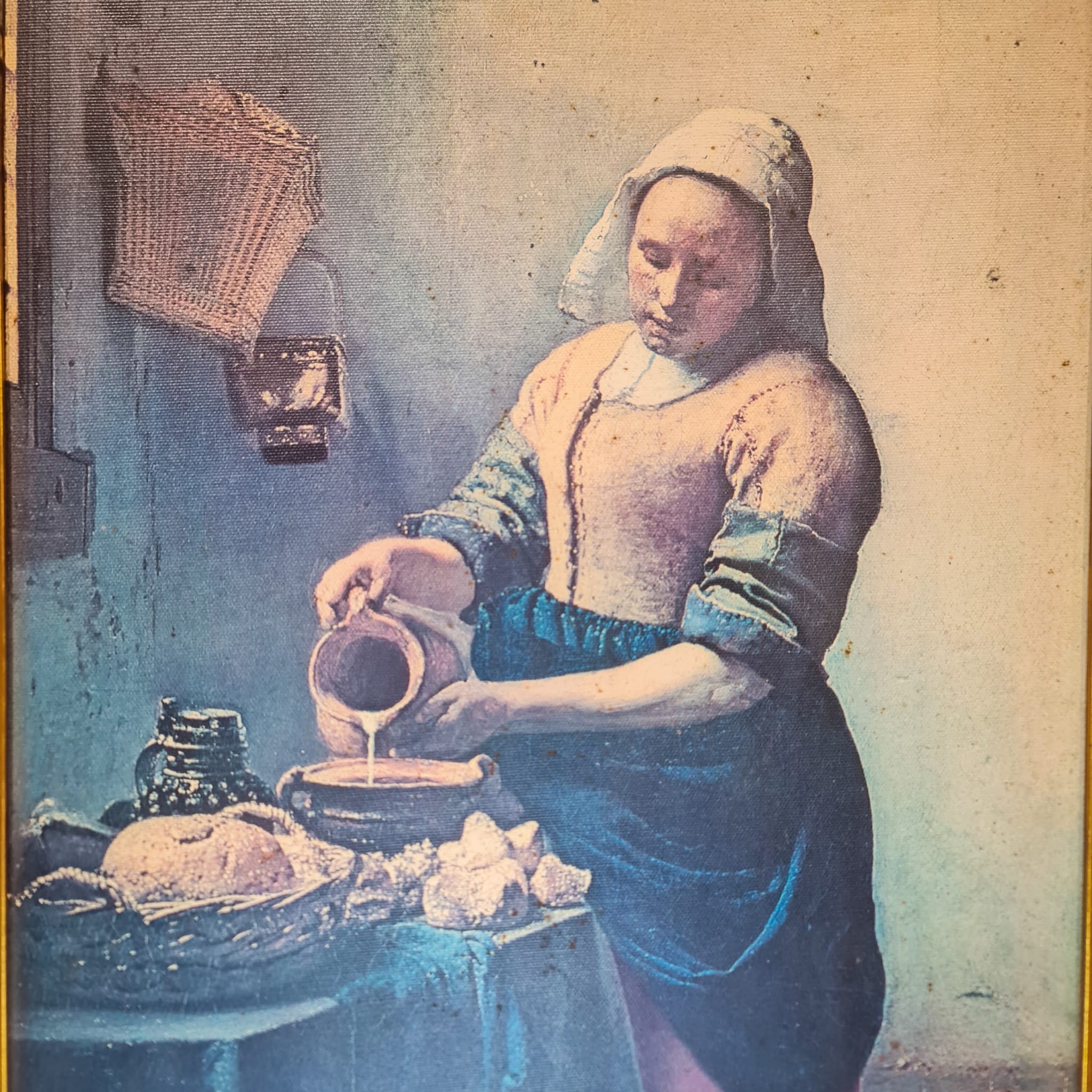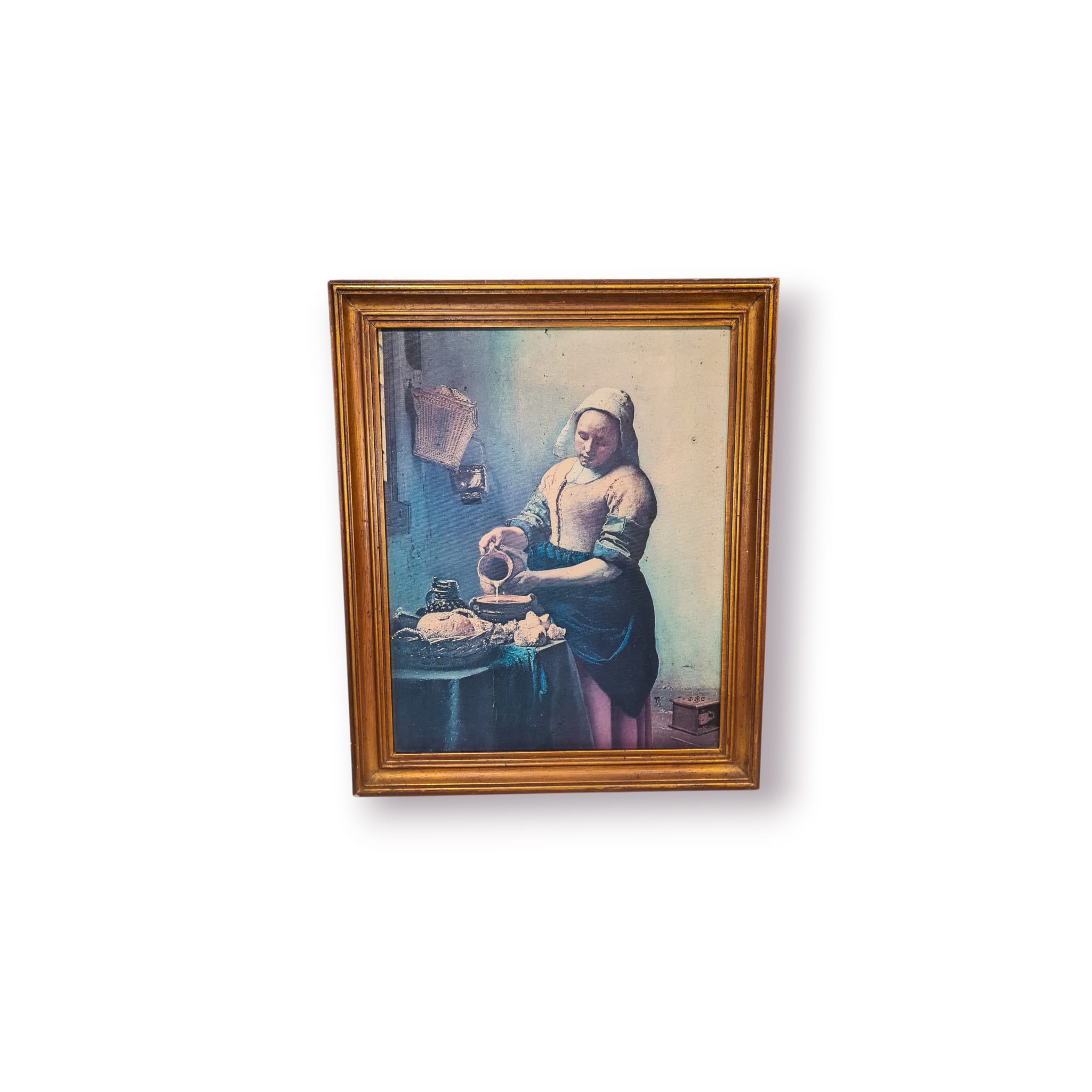 Quadro decorativo com reprodução da célebre obra “A Leiteira”, de Johannes Vermeer, uma das pinturas mais icónicas da arte holandesa do século XVII. A cena doméstica, marcada pela serenidade e pelo uso magistral da luz, confere elegância, profundidade e intemporalidade a qualquer espaço.