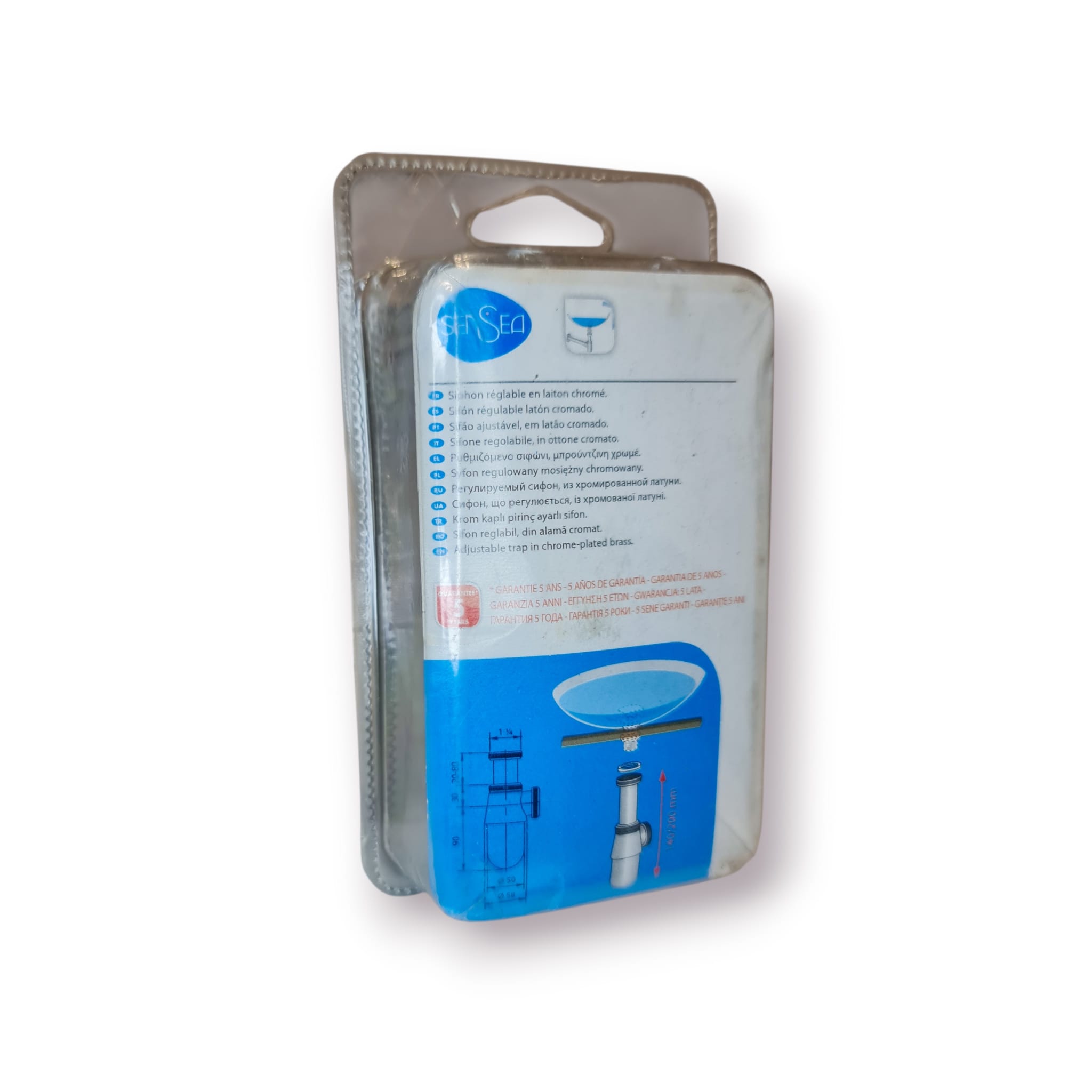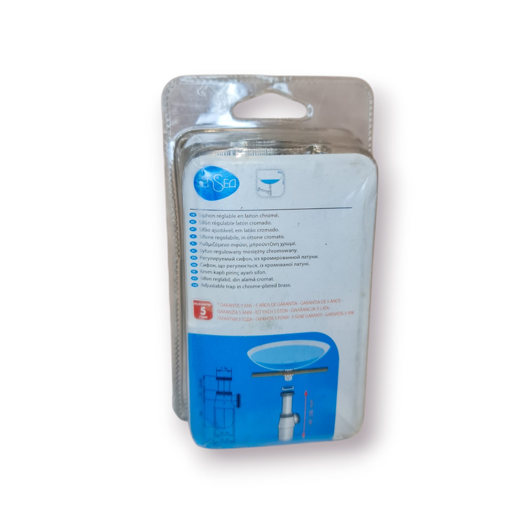 Sifão regulável da marca Sensea, totalmente novo, ainda selado na embalagem original.