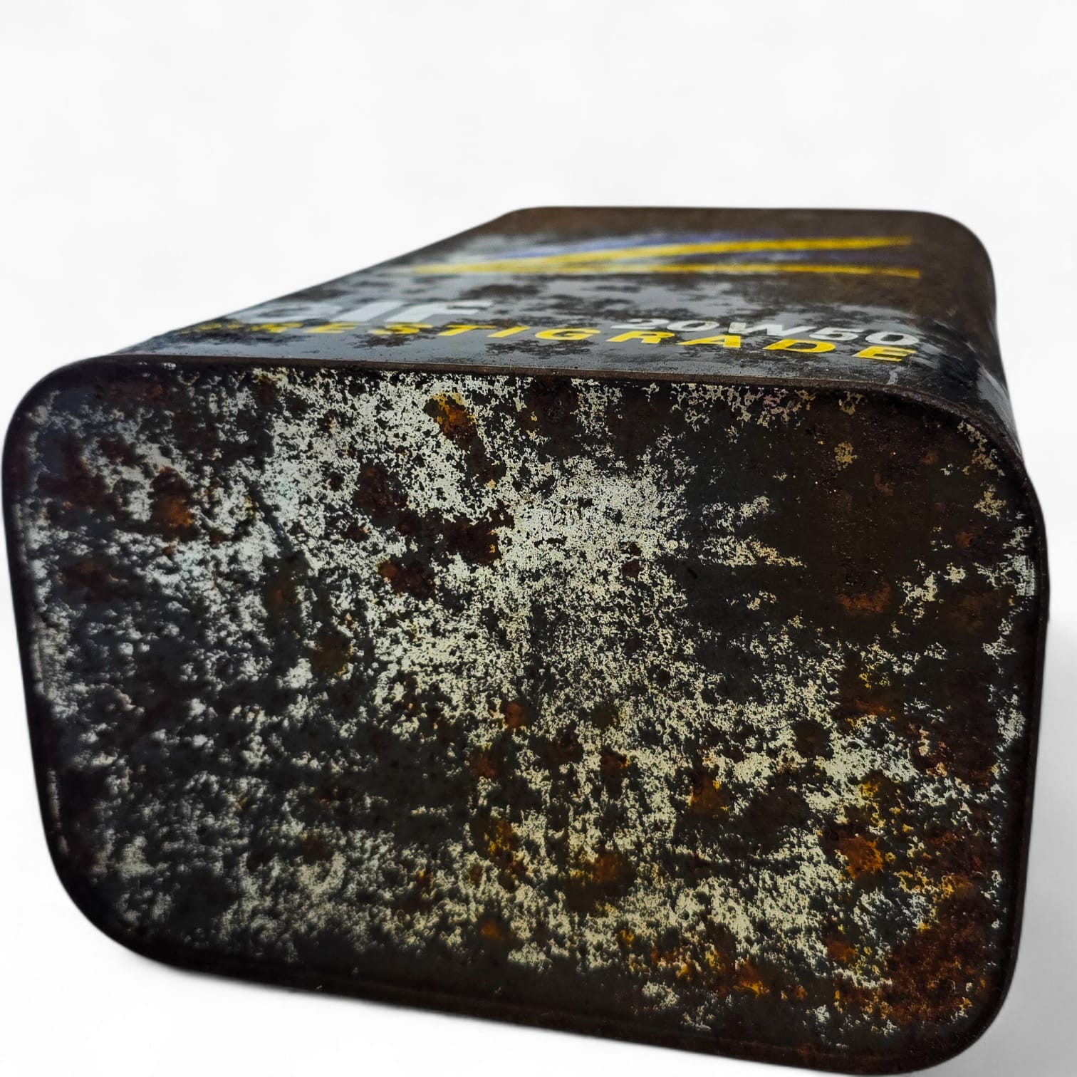 Peça vintage de óleo automóvel, com grafismo original nas cores azul, amarelo e branco. Mantém tampa vermelha original e pega metálica superior.