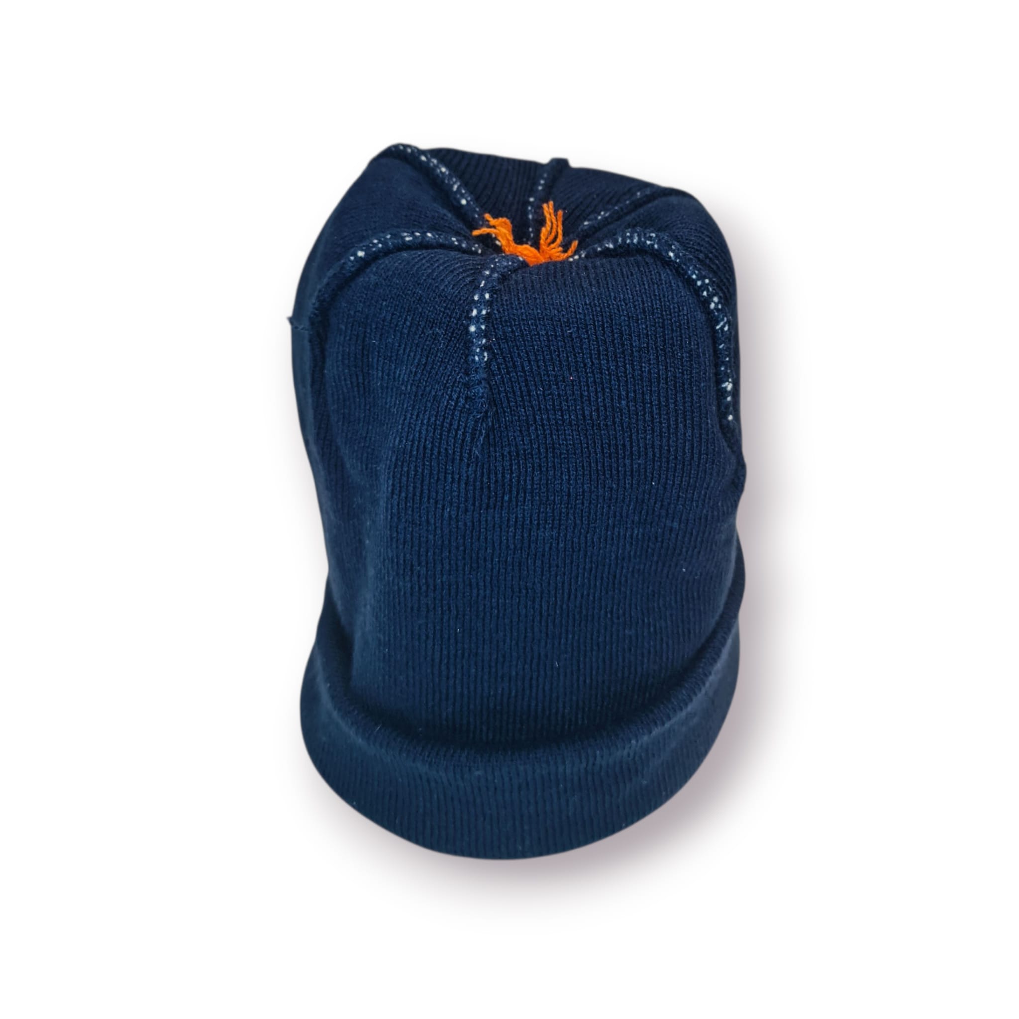 🧢 Gorro Malha “BRONX” – Azul Marinho com Pompom Laranja