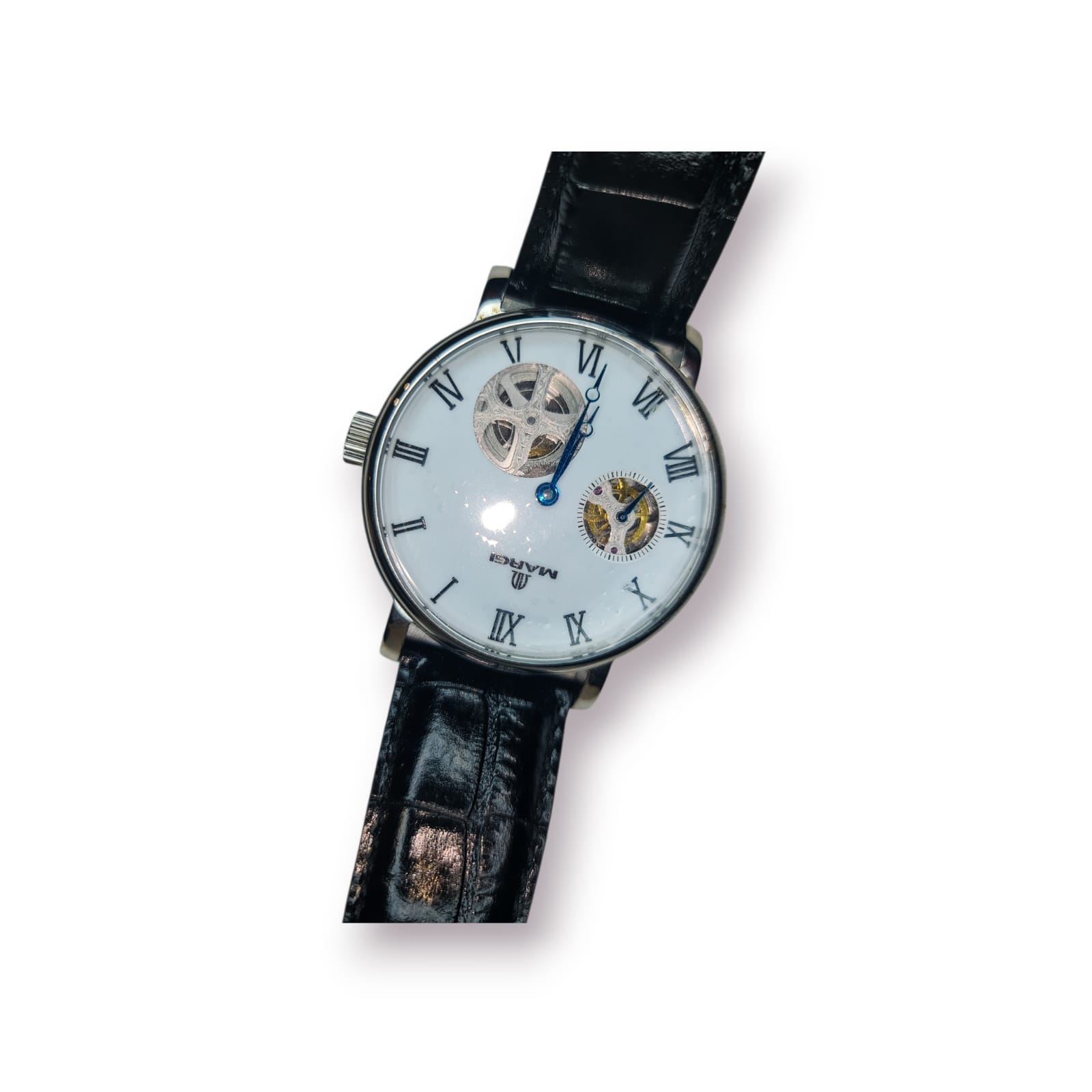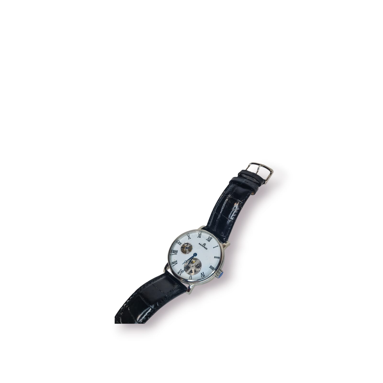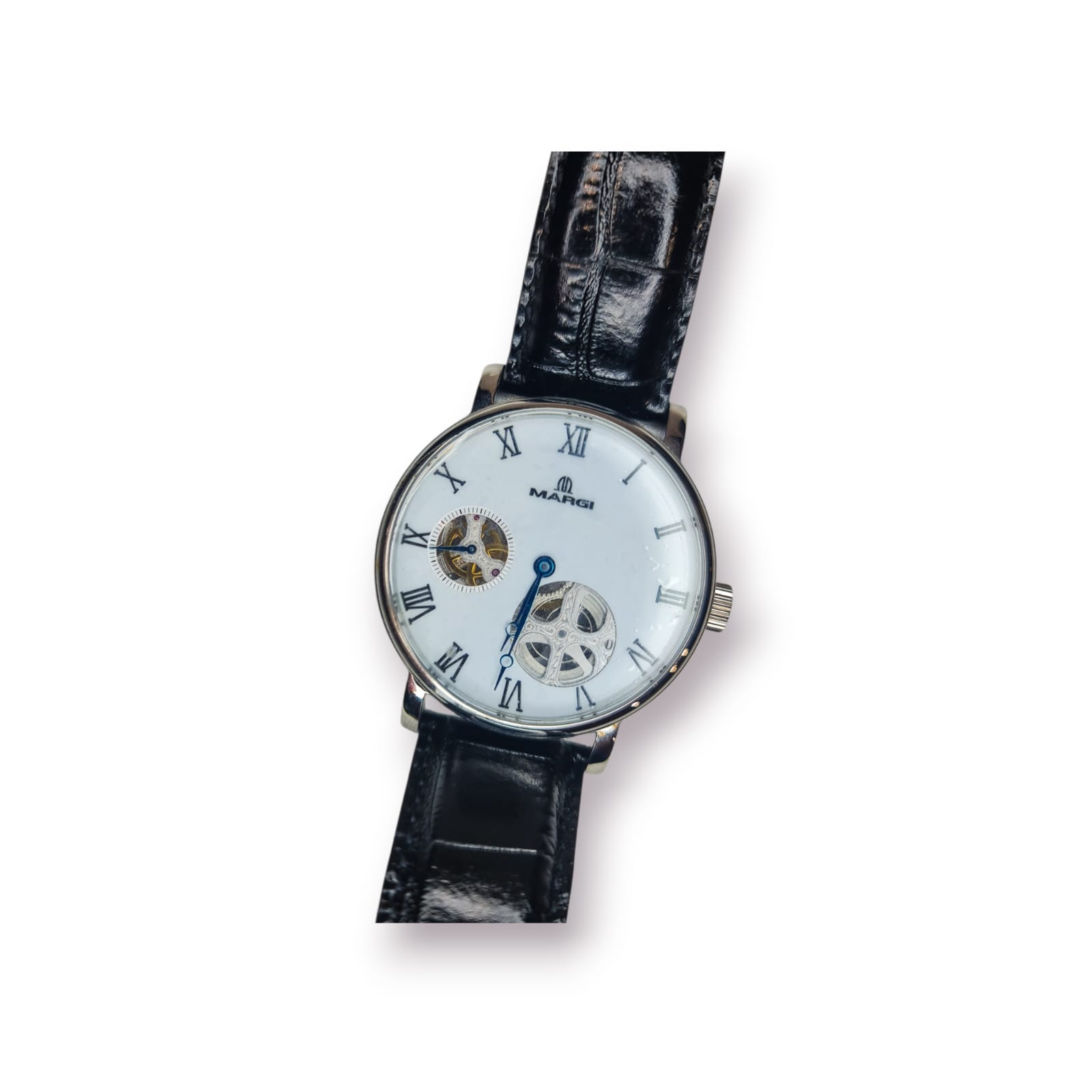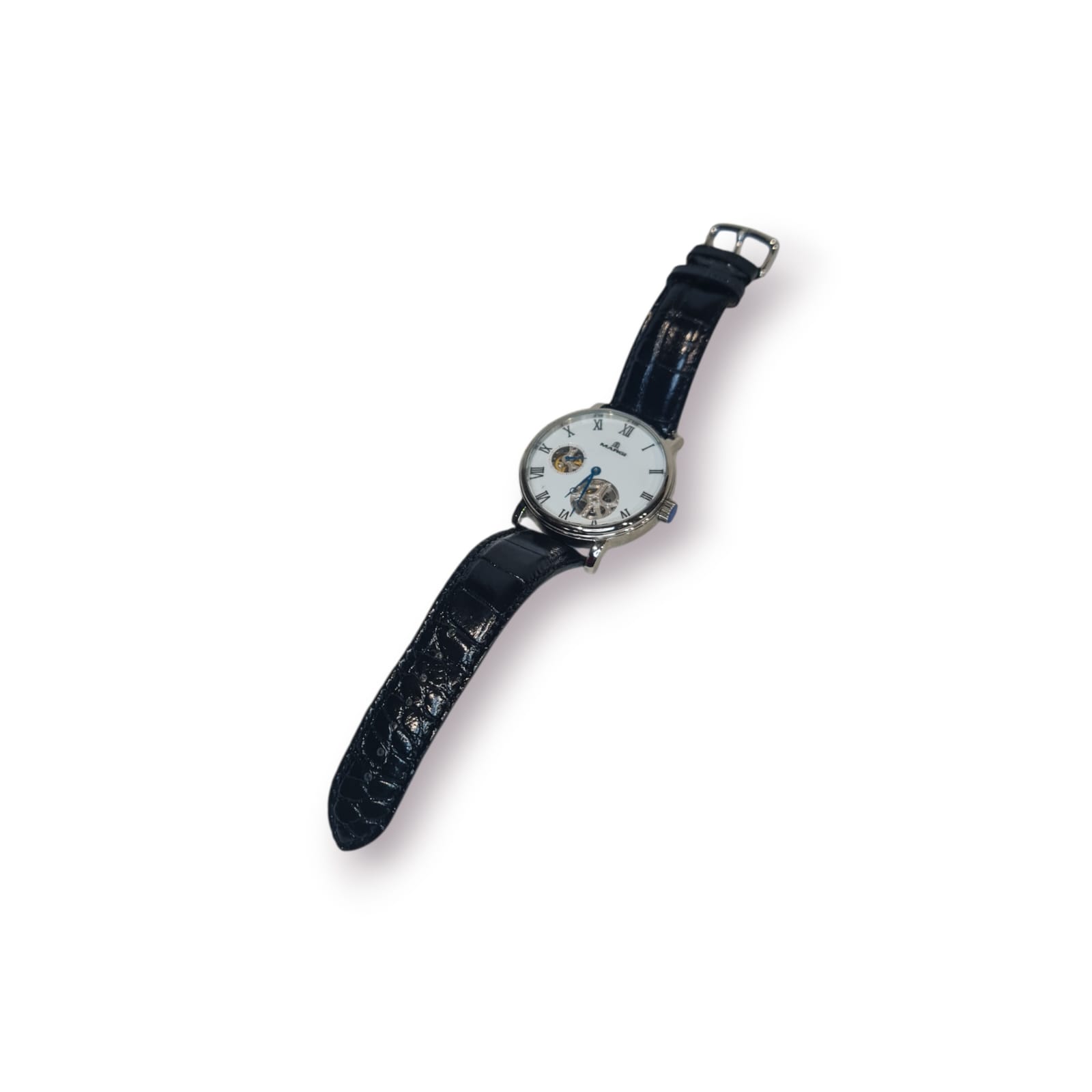 Este modelo distingue-se pelo seu mostrador clássico com numeração romana, janelas skeleton que revelam o movimento mecânico e uma estética intemporal pensada para apreciadores e colecionadores.