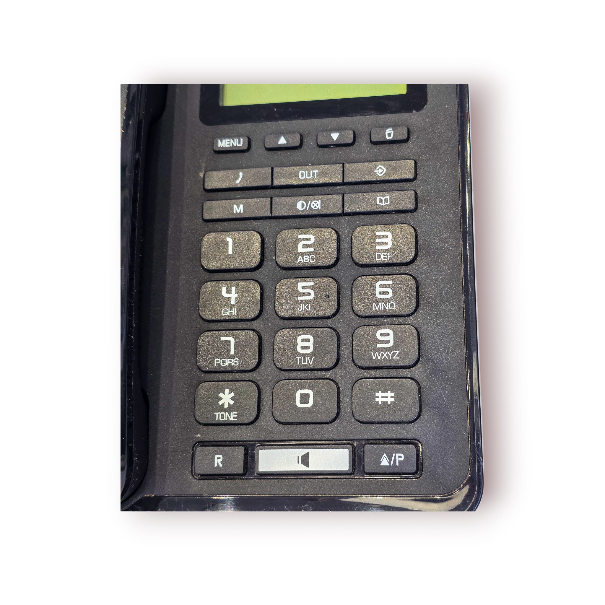 Este modelo possui display LCD, permitindo visualizar o número durante a marcação ou identificar chamadas em sistemas compatíveis. Inclui também teclas de memória, função mute, redial e controlo de volume, oferecendo uma utilização simples e prática no dia a dia.