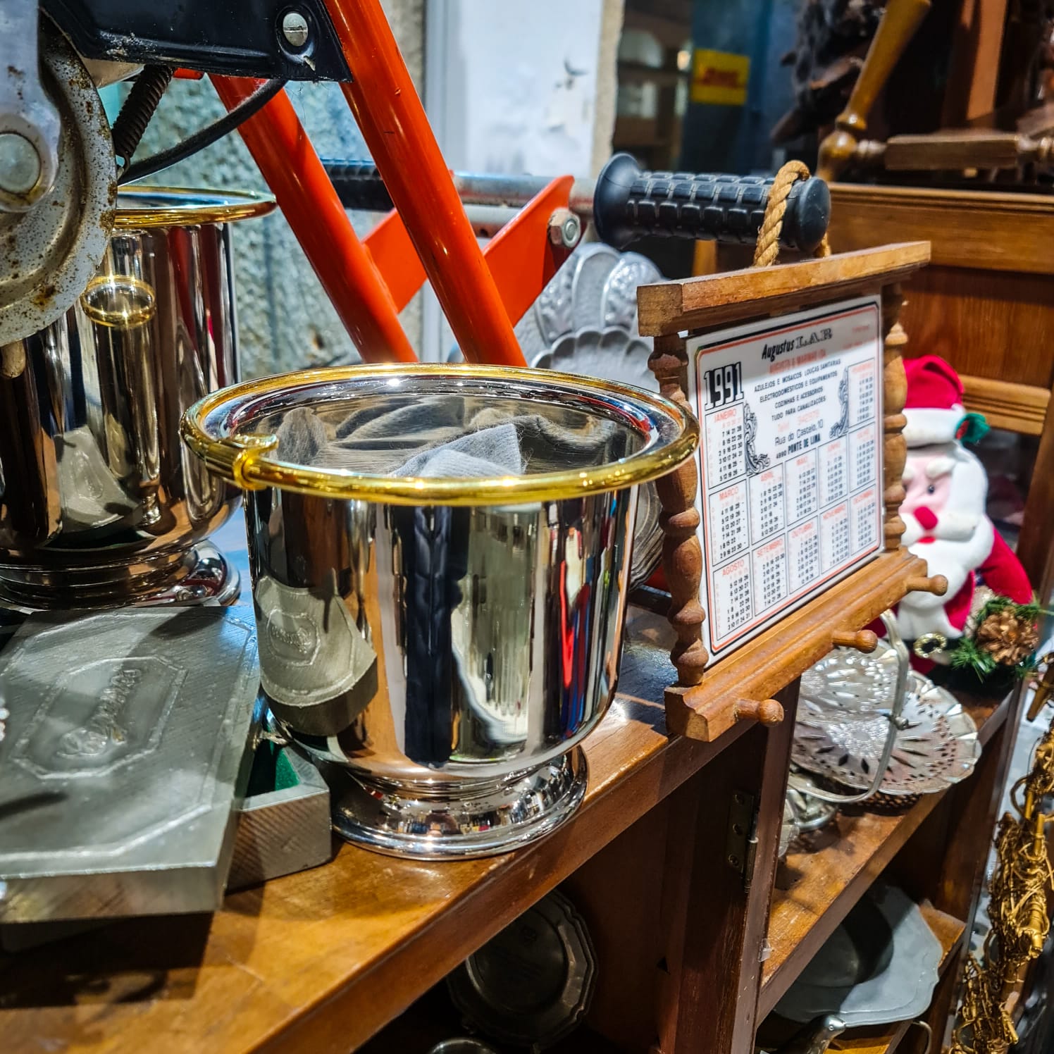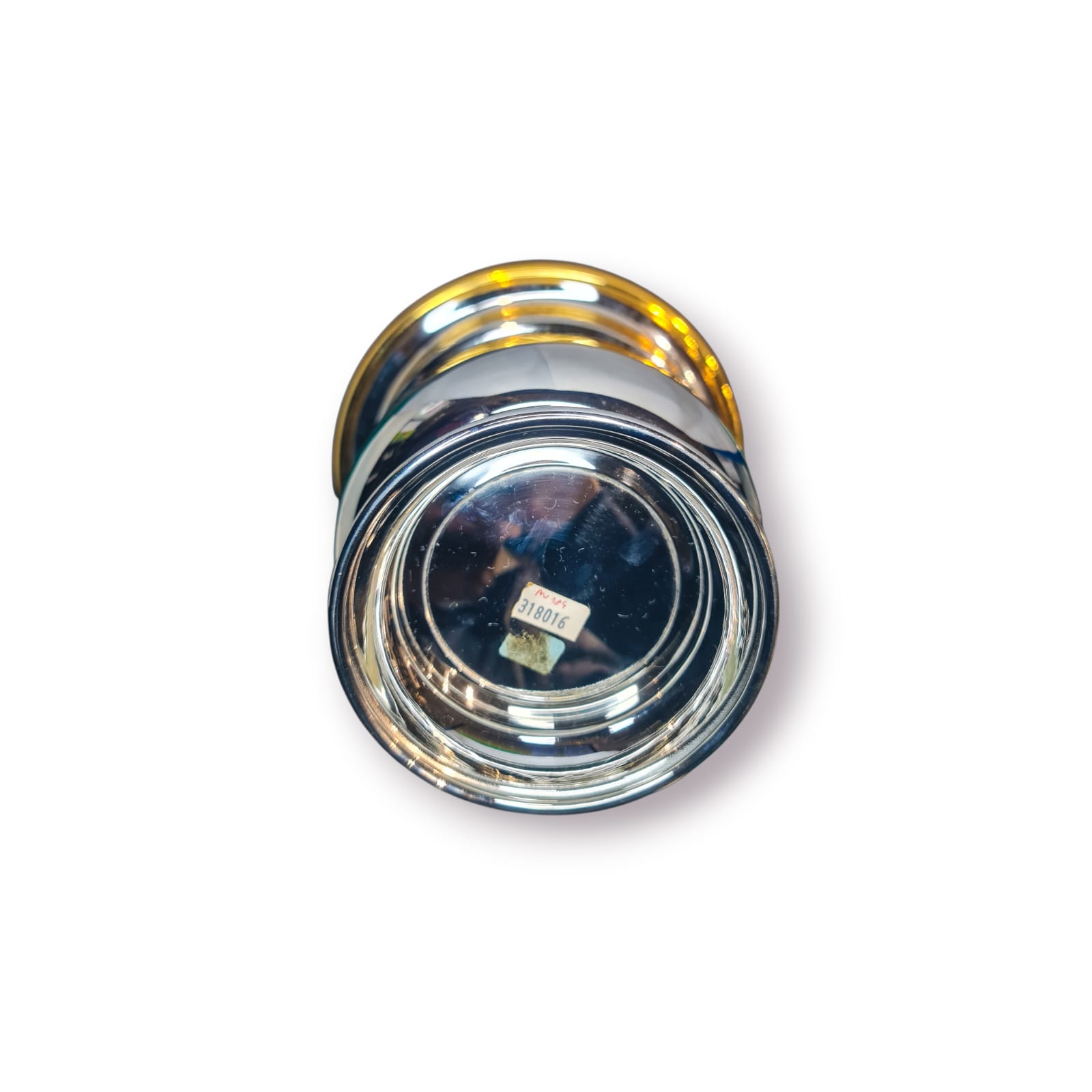 Metal com sinais normais de uso/idade e possíveis micro-marcas de polimento (visíveis sobretudo pela superfície espelhada).