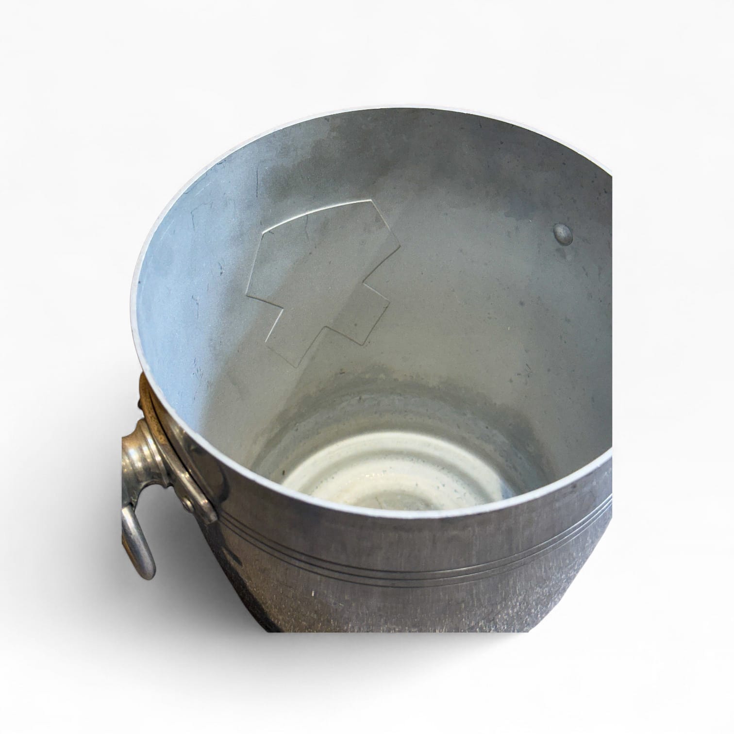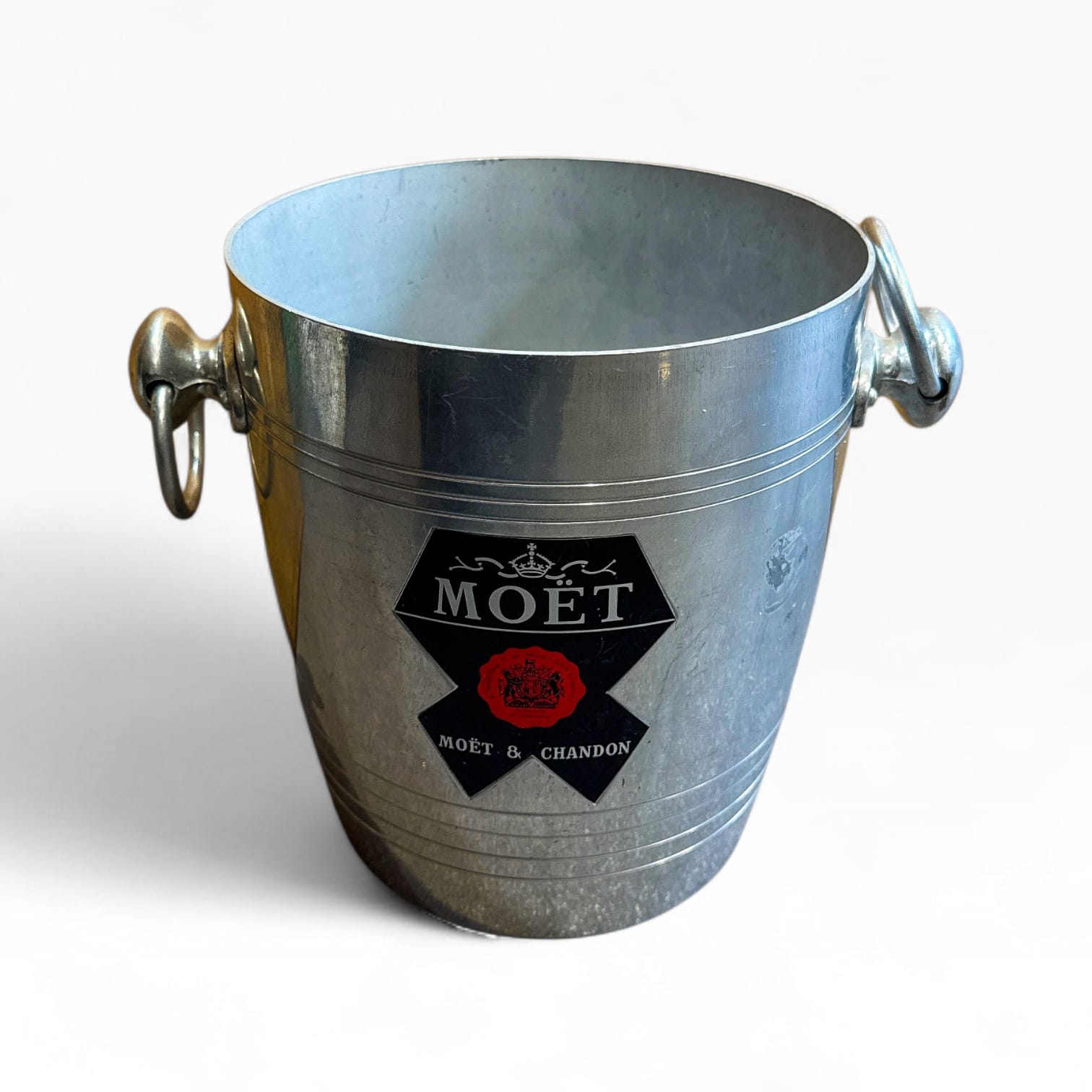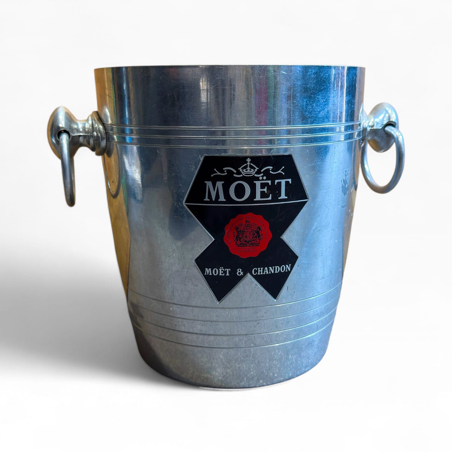 Esta champanheira original da icónica casa francesa destaca-se pelo seu design clássico em metal escovado, com pegas laterais robustas e o emblemático logótipo Moët & Chandon em destaque.