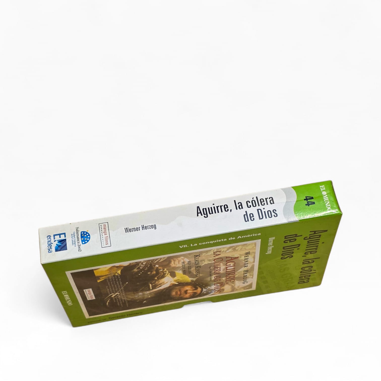 Exemplar original em formato VHS do icónico filme Aguirre, la Cólera de Dios, realizado por Werner Herzog e protagonizado por Klaus Kinski — uma das obras mais marcantes do cinema europeu e do movimento New German Cinema.