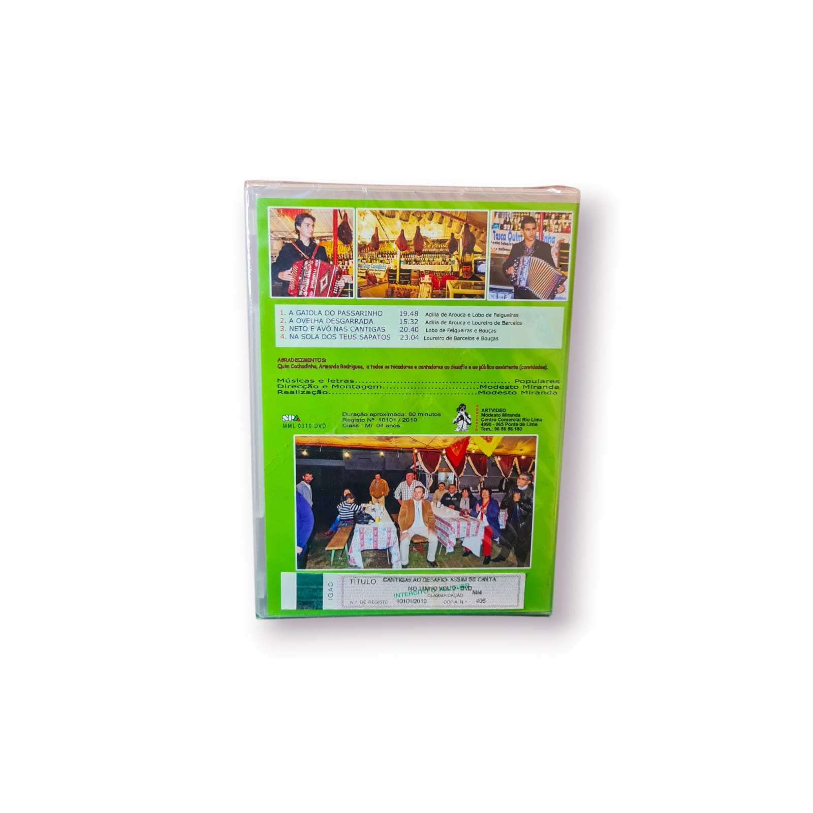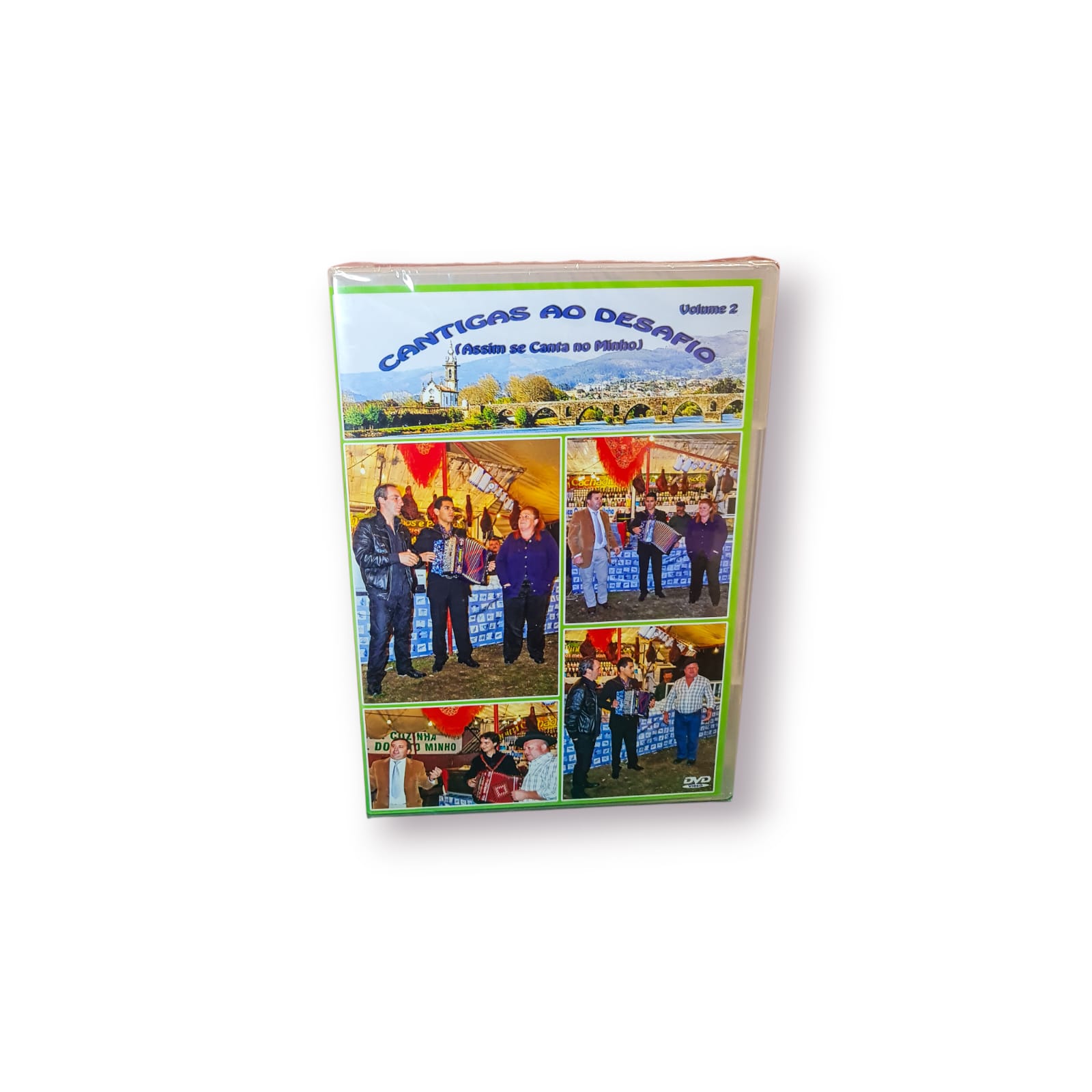 DVD original Cantigas ao Desafio – Assim se Canta no Minho (Volume 2), um testemunho autêntico da música popular minhota, com desafios cantados, acordeão e momentos típicos de convívio tradicional.