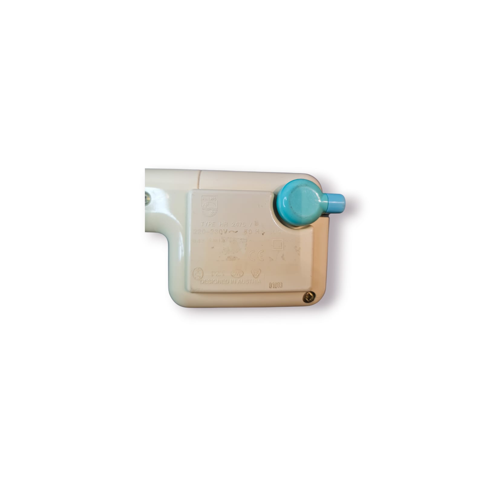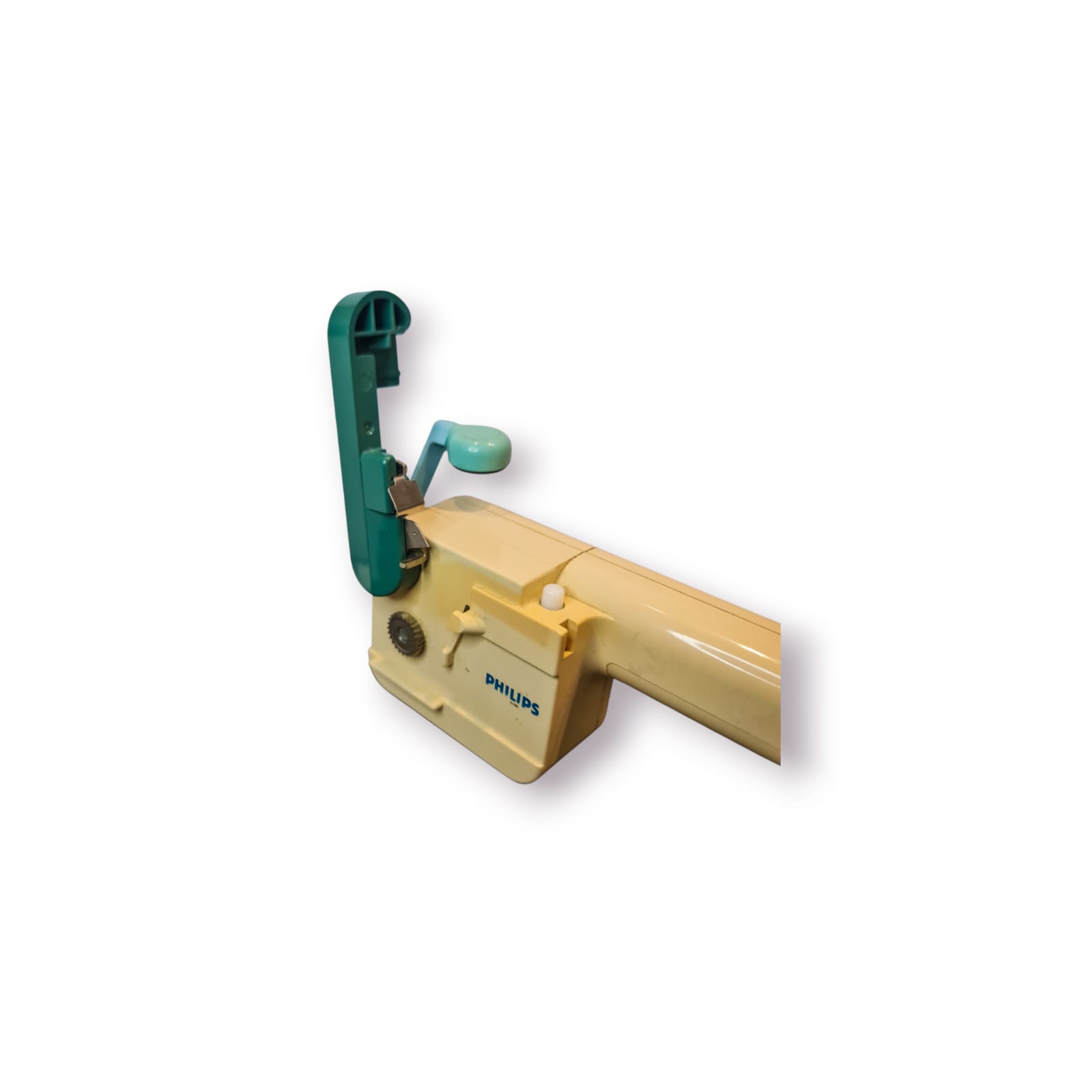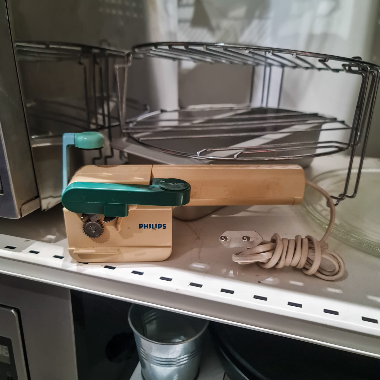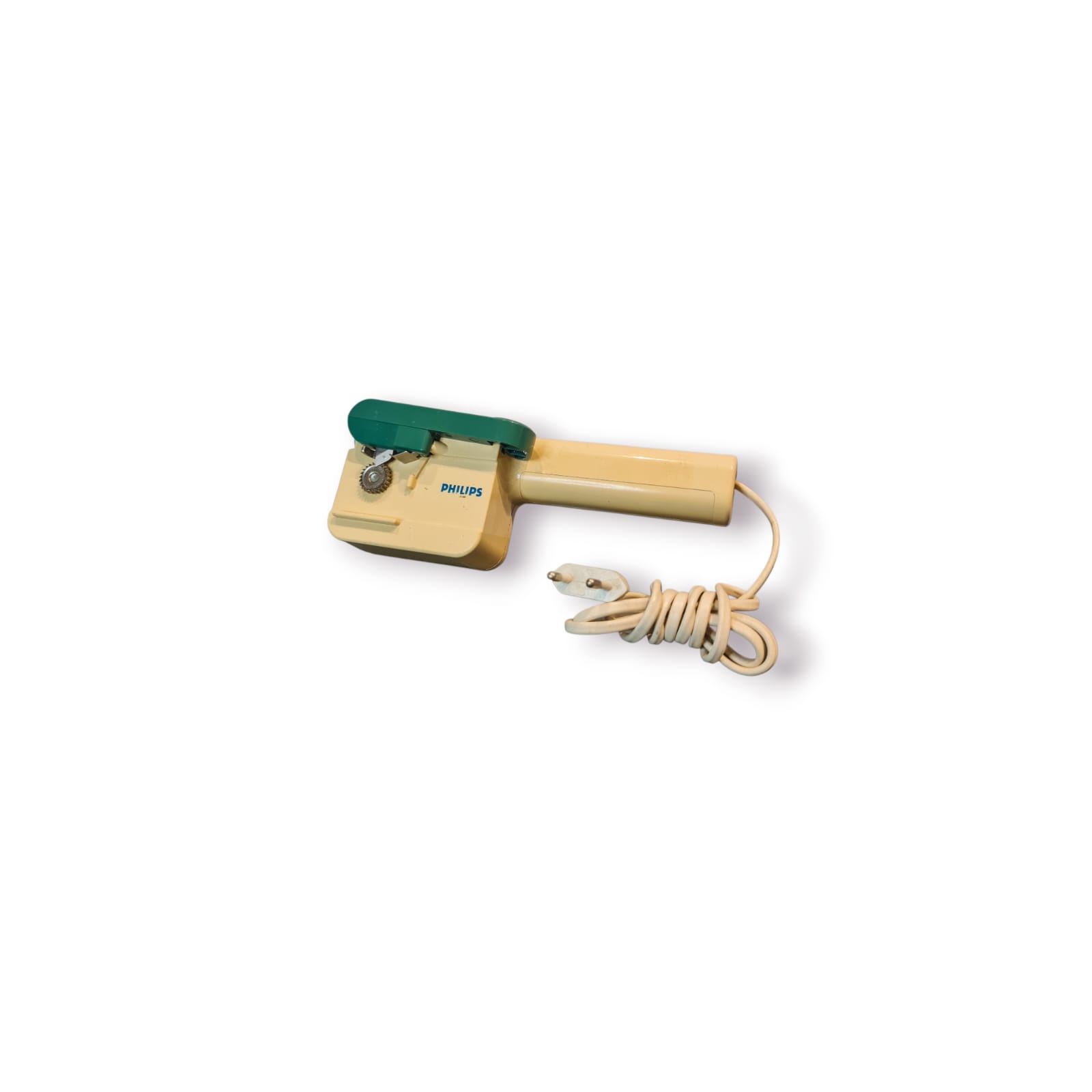 Abre-latas elétrico PHILIPS vintage, com design icónico dos anos 70/80, cores originais e mecanismo funcional.