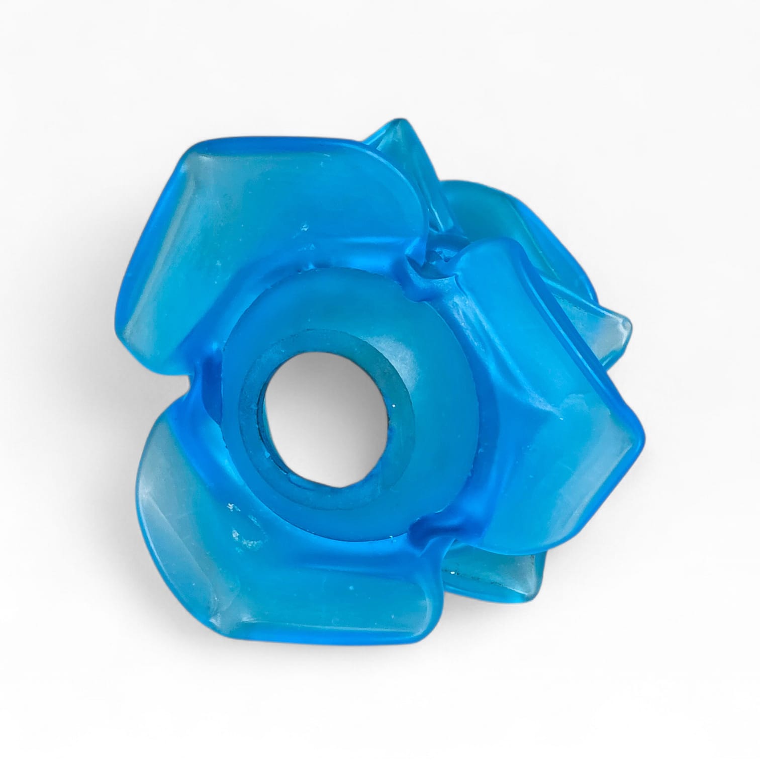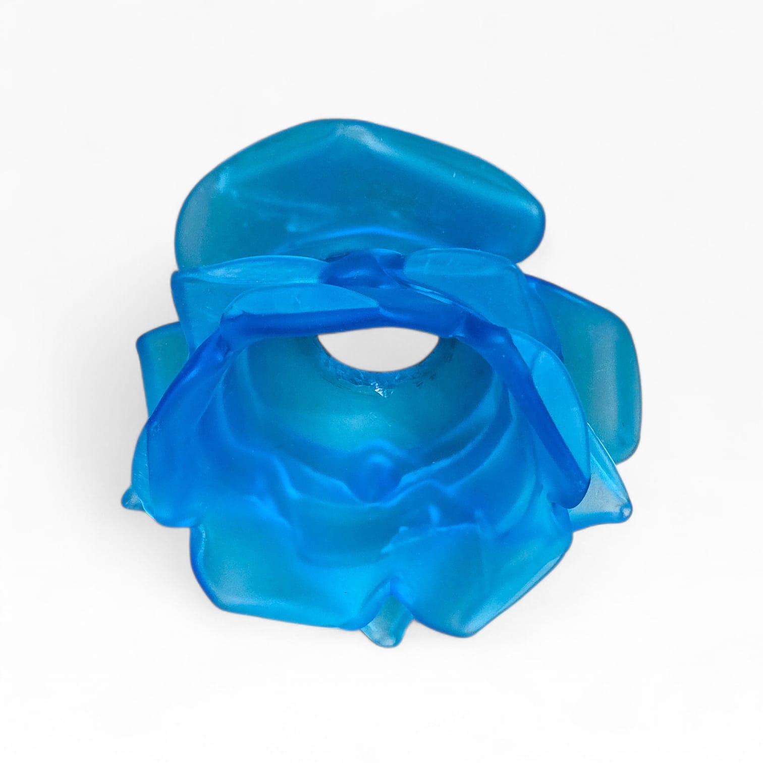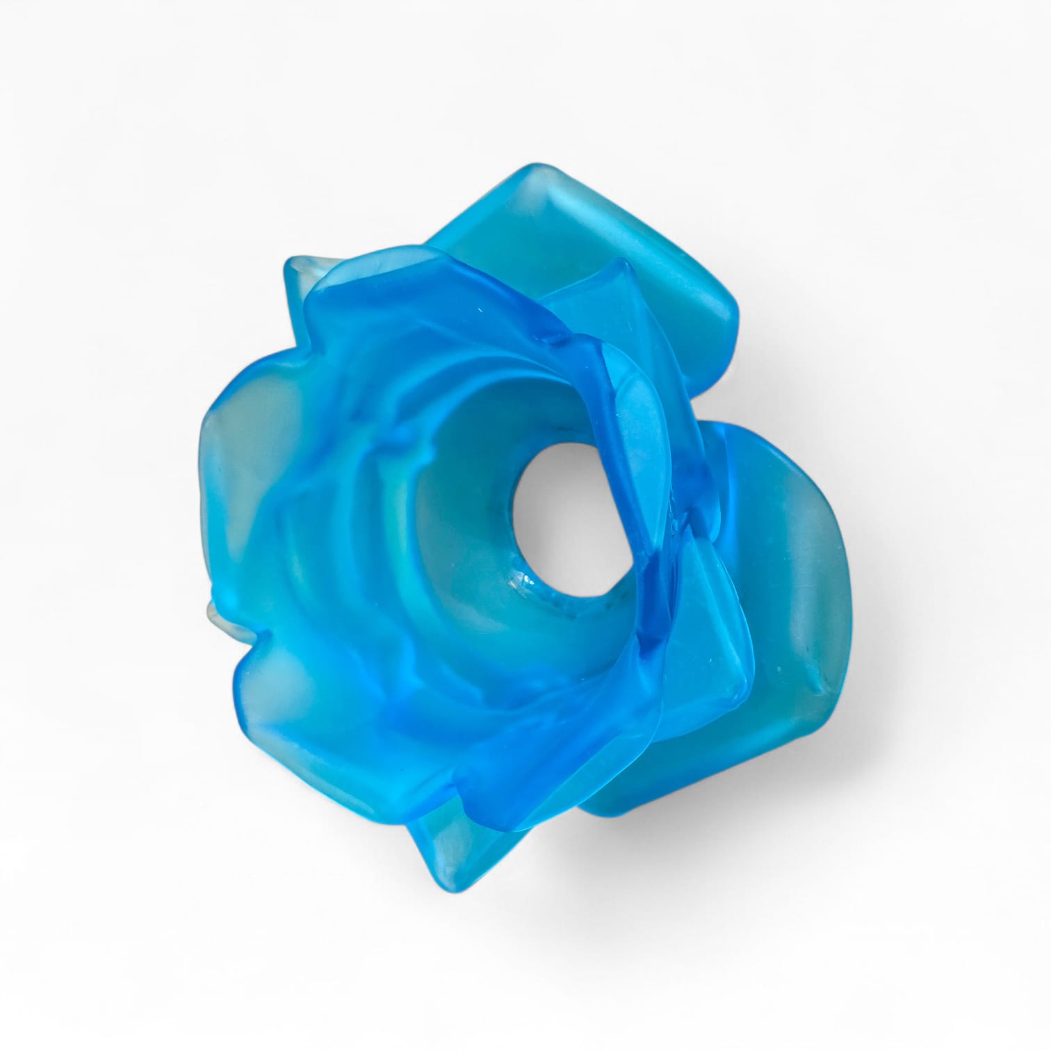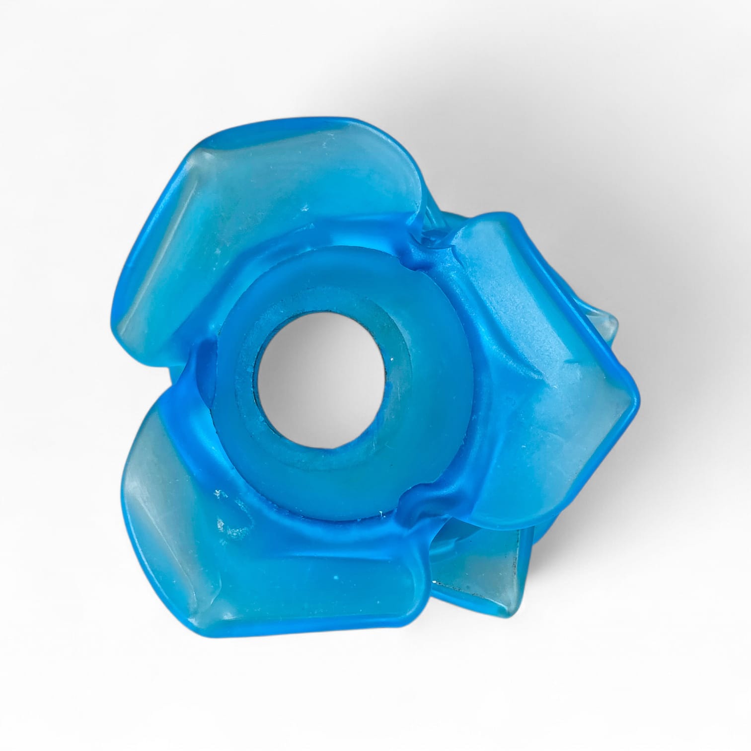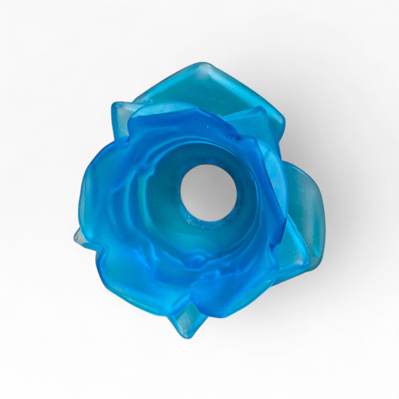 Elegante tulipa de vidro para candeeiro, com formato floral e acabamento translúcido em tom azul, ideal para dar um toque decorativo e sofisticado a qualquer espaço.
