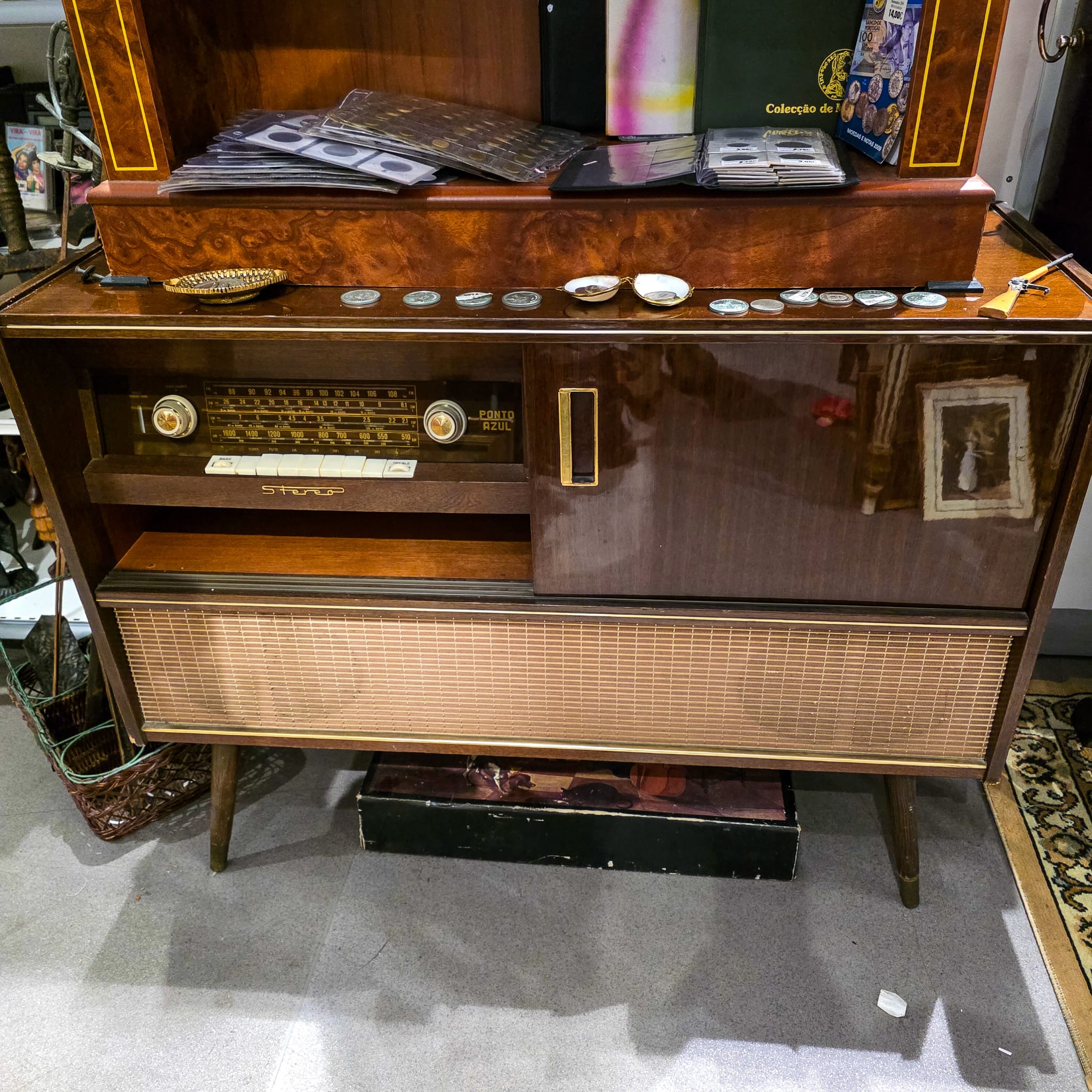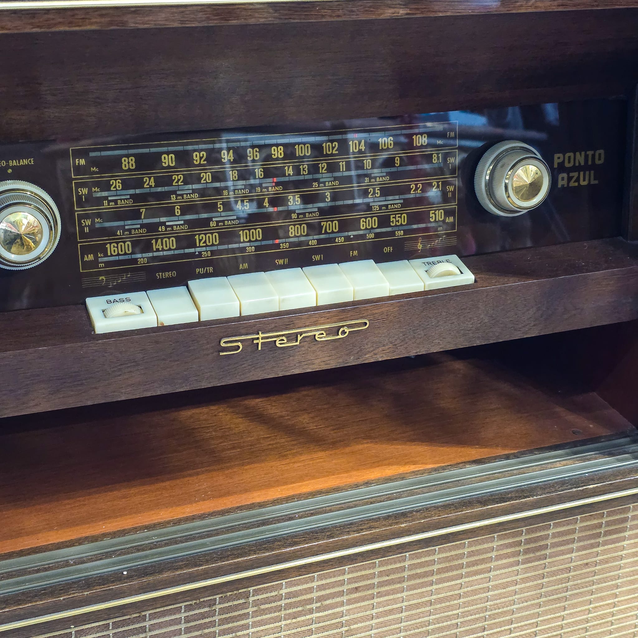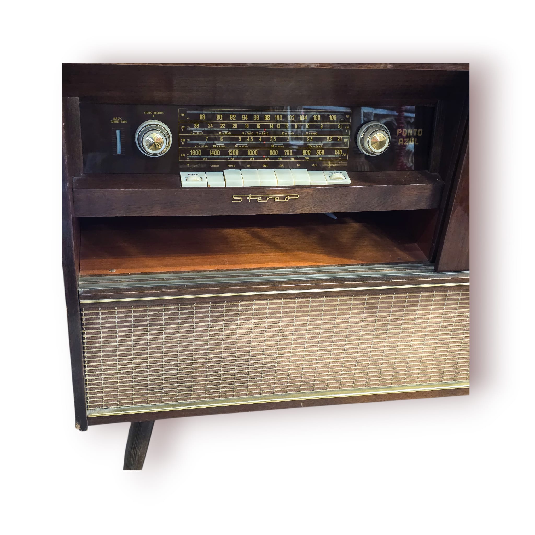 Radiomóvel estéreo vintage fabricado na Alemanha Ocidental, modelo Punto Azul 603/60, datado do final dos anos 60 / início dos anos 70.