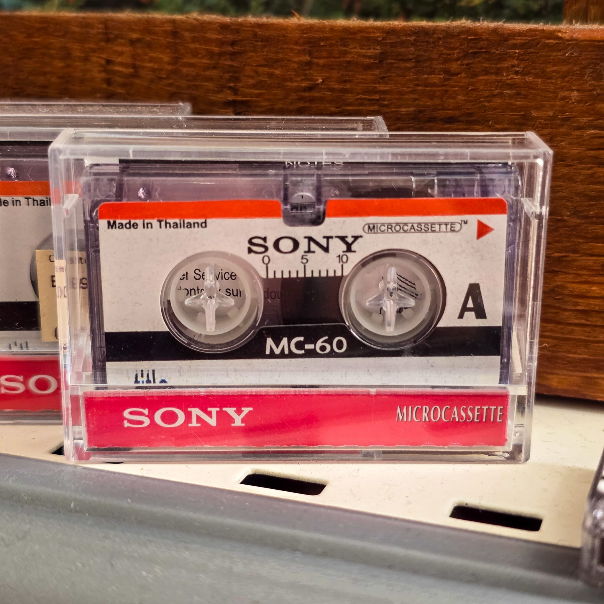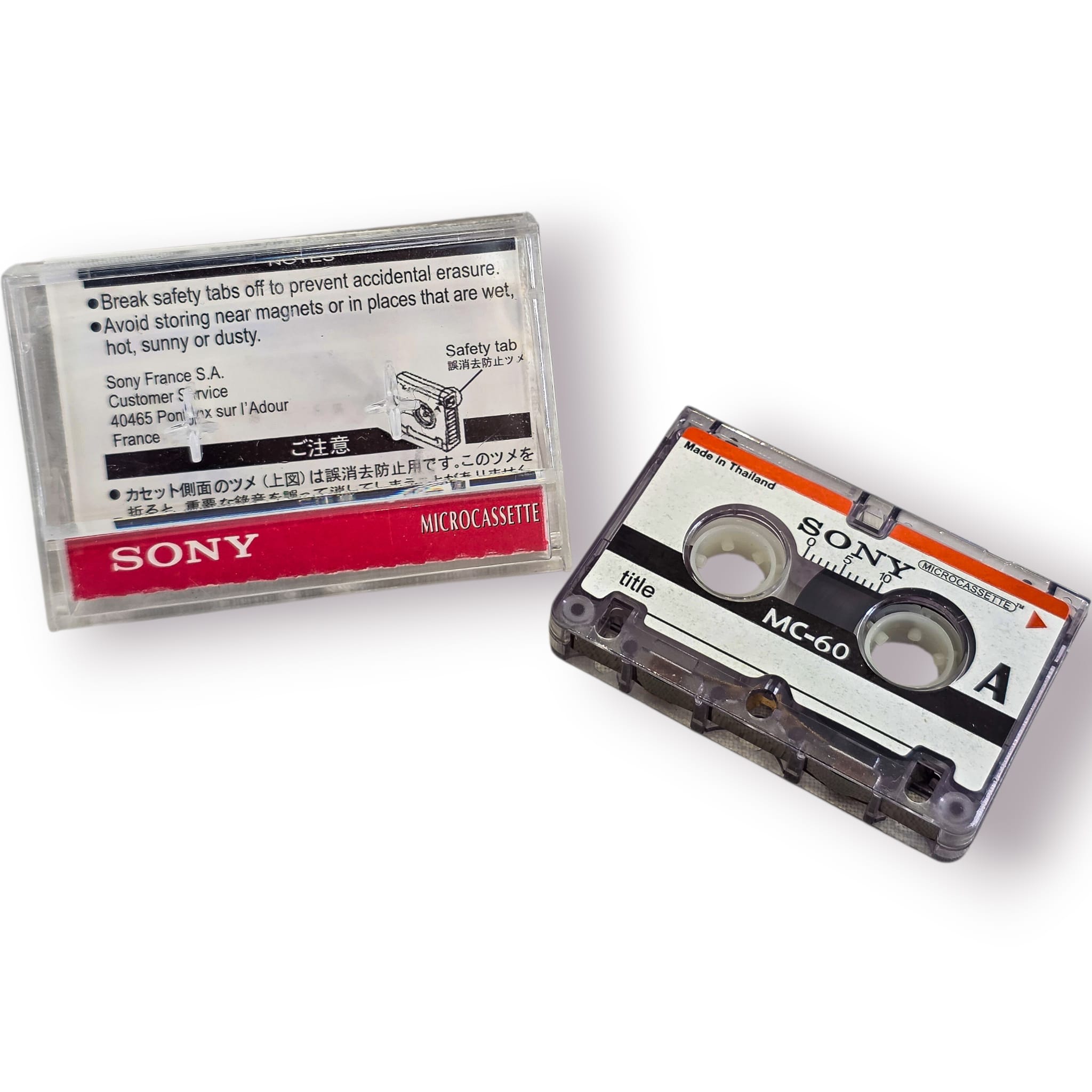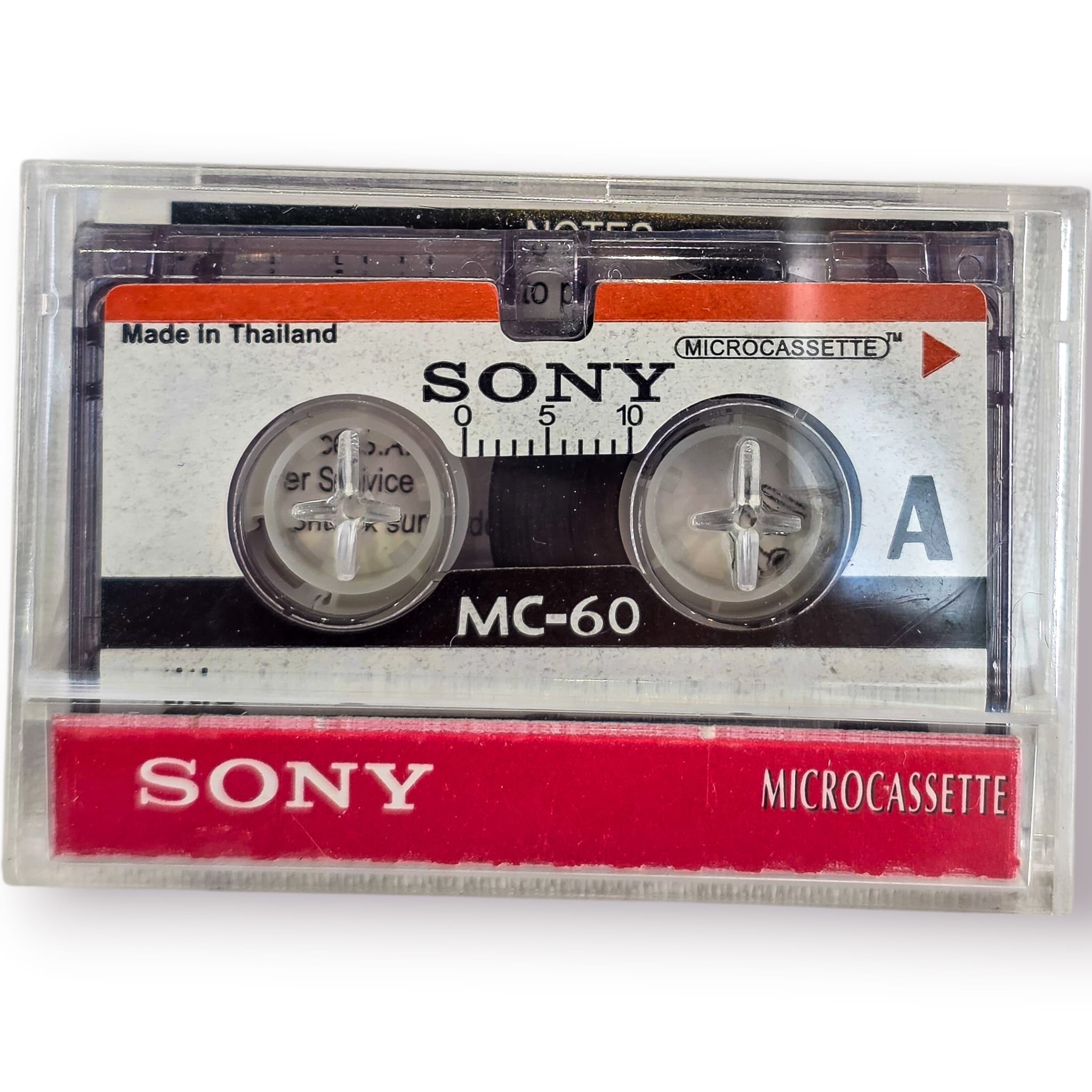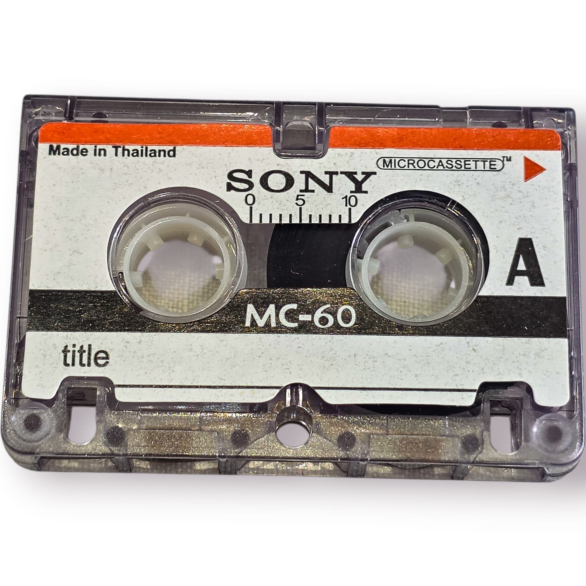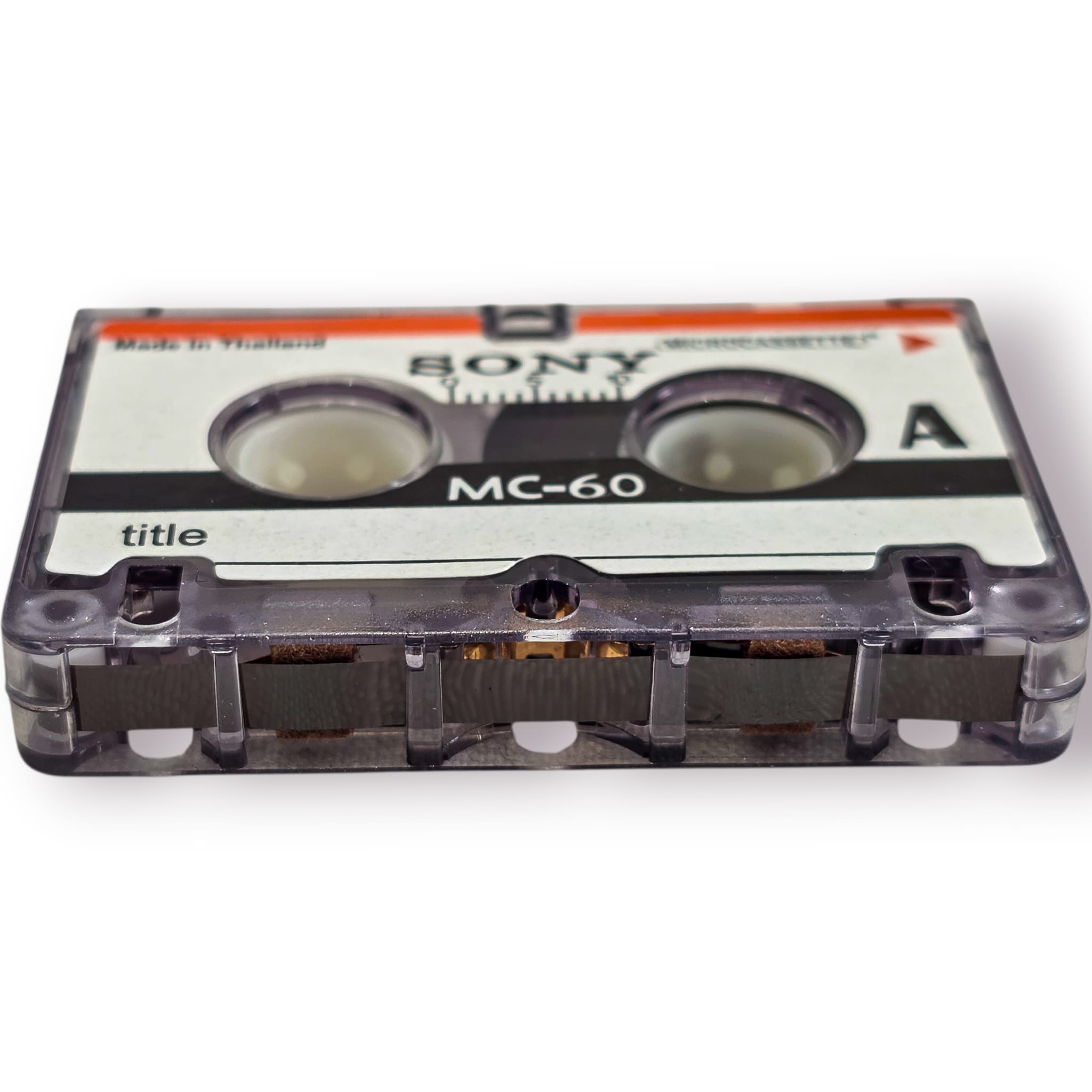 Clássica microcassete SONY MC-60, um formato amplamente utilizado em gravadores portáteis e ditafones nas décadas de 80, 90 e início dos anos 2000.