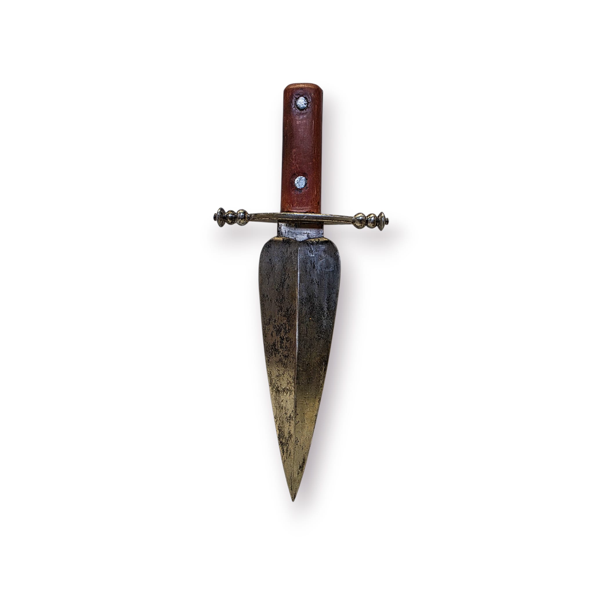Punhal decorativo com lâmina marcada “Fª DE TOLEDO”, referência clássica à tradição metalúrgica de Toledo, Espanha — cidade histórica conhecida pela produção de espadas e armas decorativas.