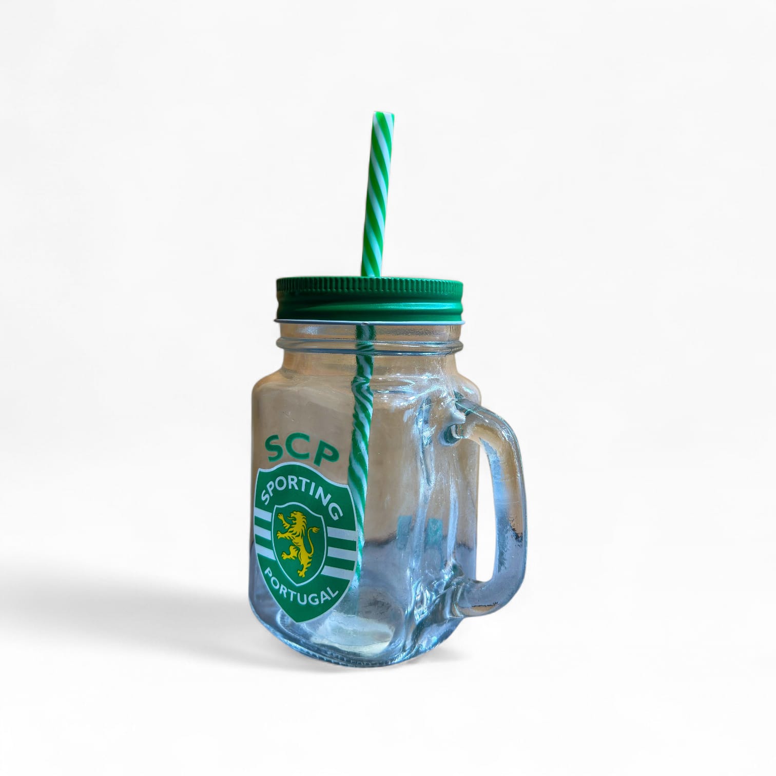 🟢 Caneca Vidro Sporting CP Oficial c/ Tampa e Palhinha – 14cm | Nova c/ Etiqueta