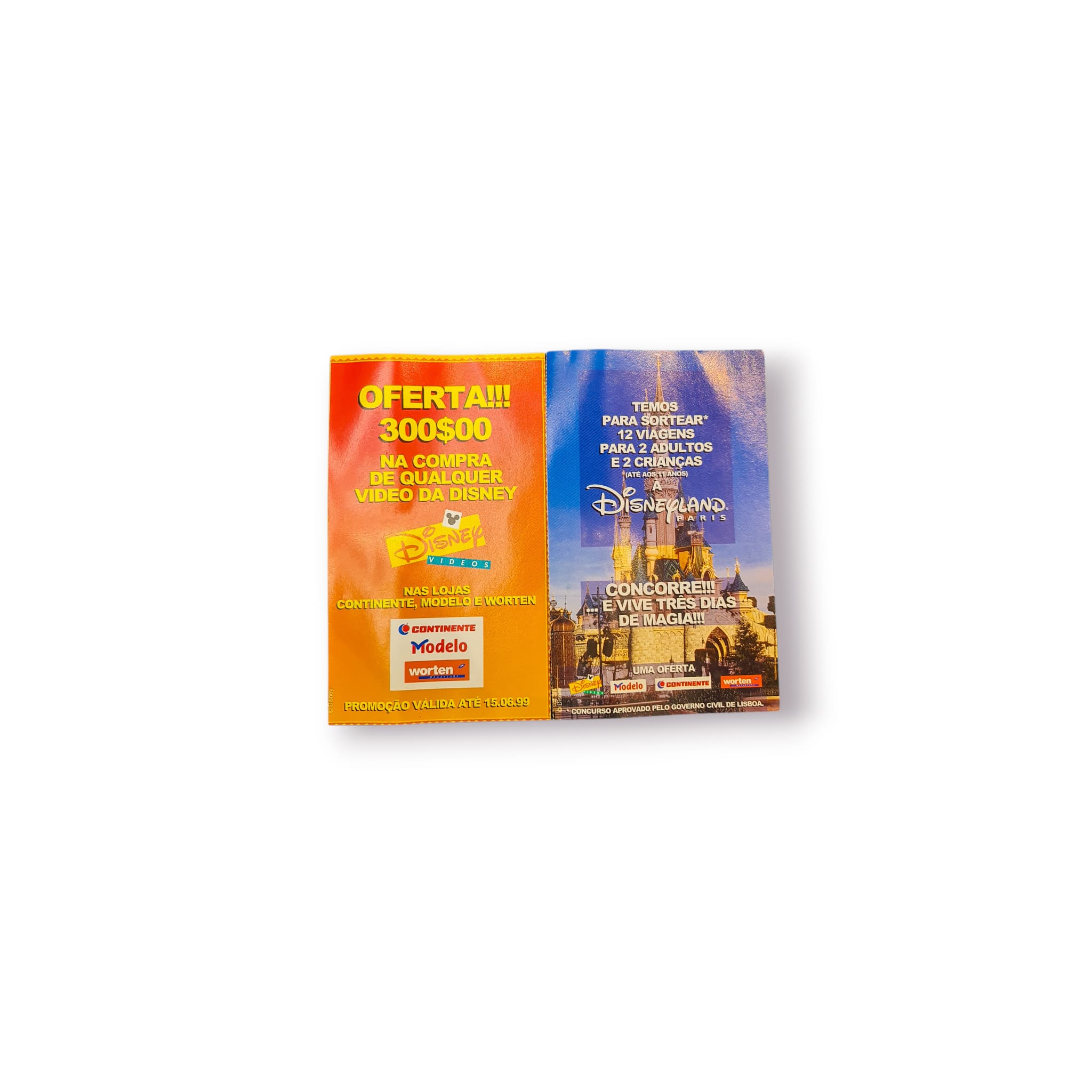 A cassete apresenta-se em bom estado geral, com caixa original, grafismos vivos e etiqueta da Disney Home Video. O vale promocional acrescenta valor histórico e colecionável ao conjunto.