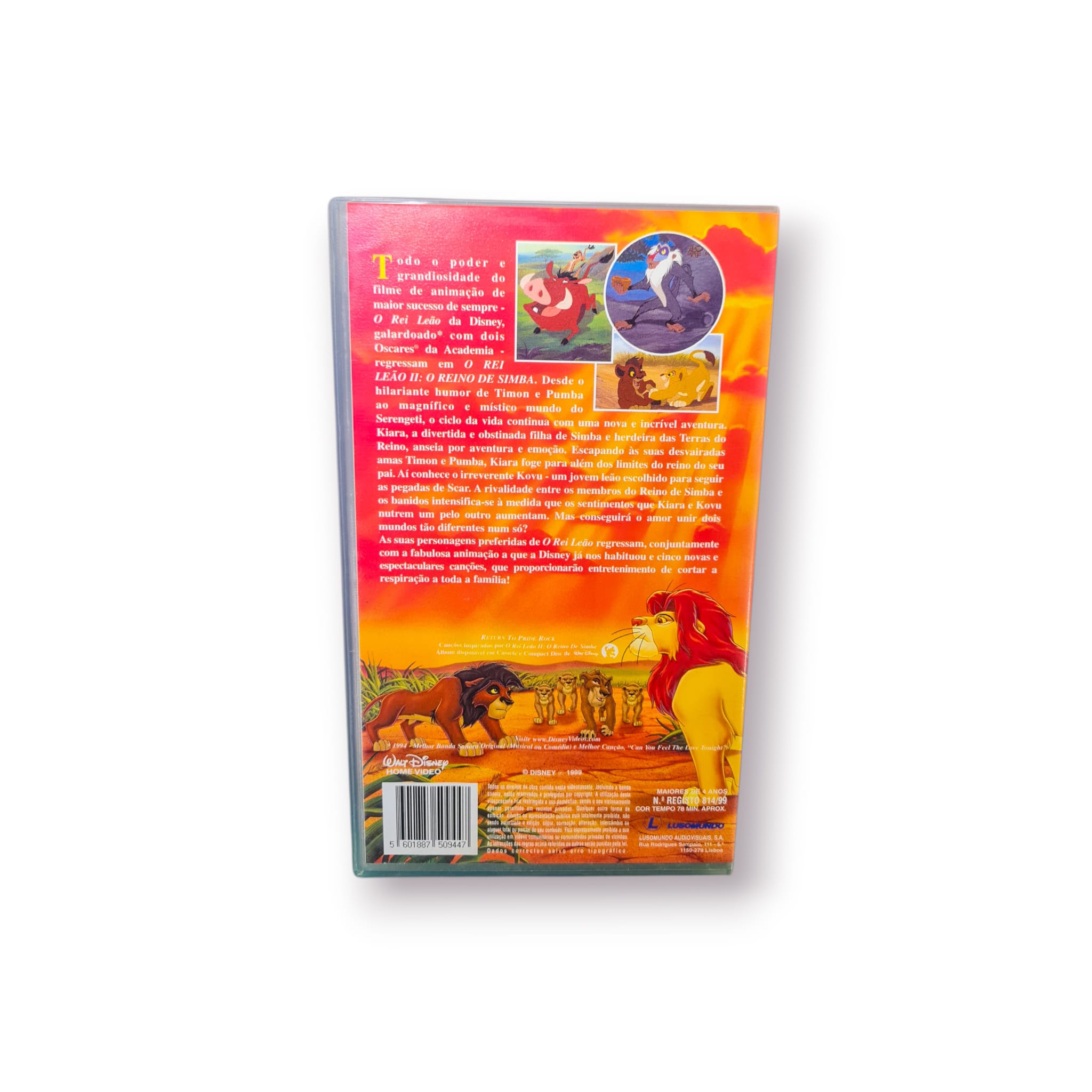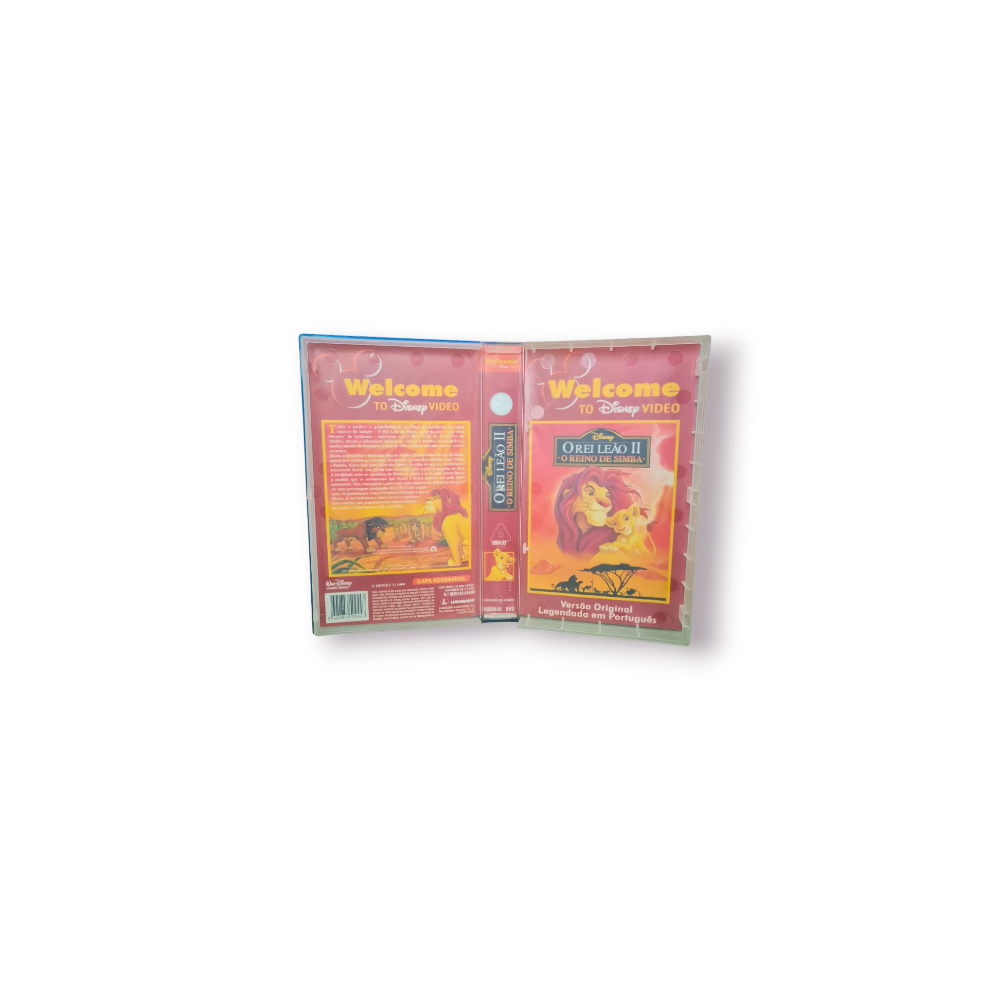 Edição em VHS do clássico da Disney “O Rei Leão II – O Reino de Simba”, em versão original legendada em português, acompanhada pelo folheto/vale promocional original associado às campanhas da época (Continente / Modelo / Worten).