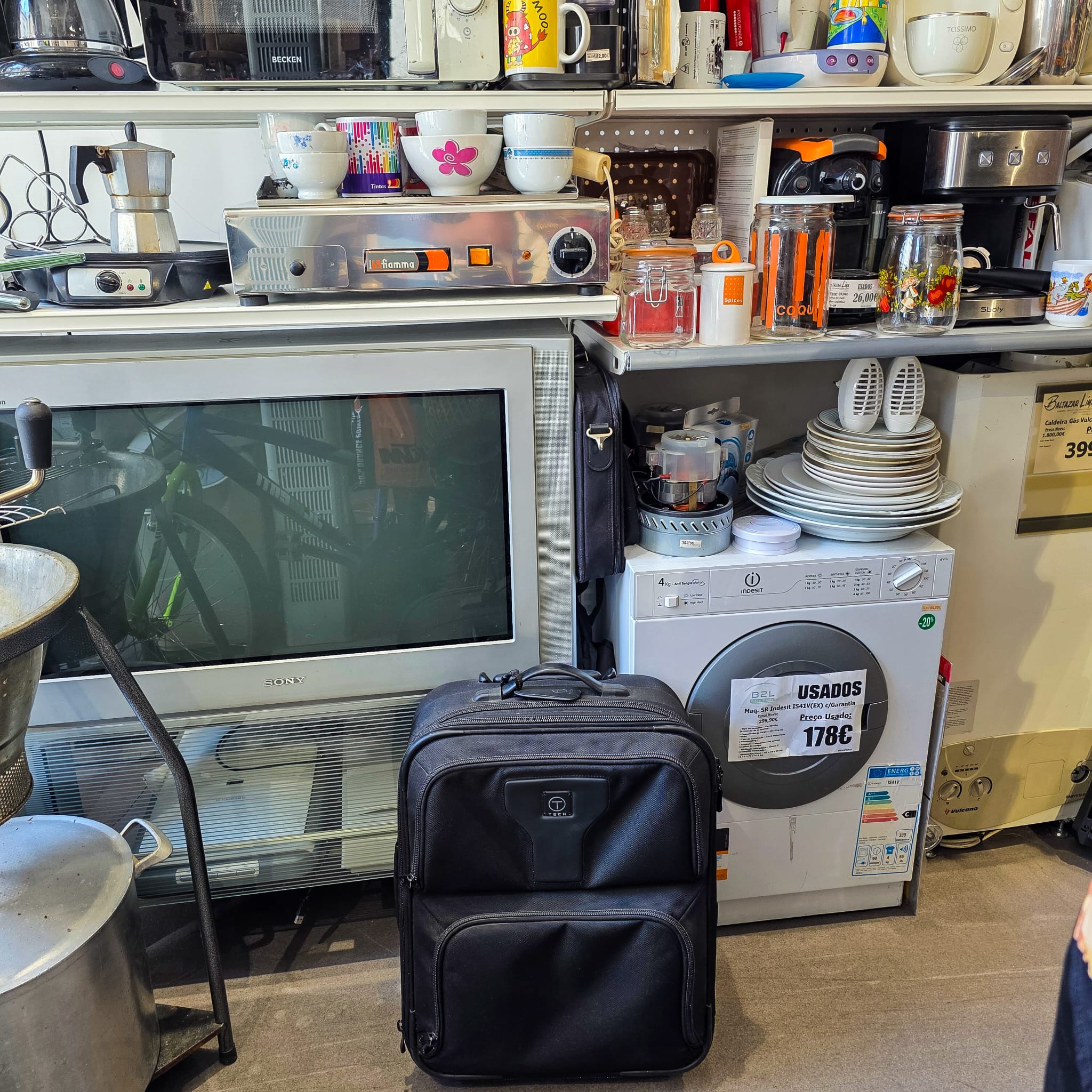 Apresenta sinais de uso visíveis, especialmente nas rodas e base (desgaste normal de utilização). Interior em bom estado geral, funcional e pronto a uso.
