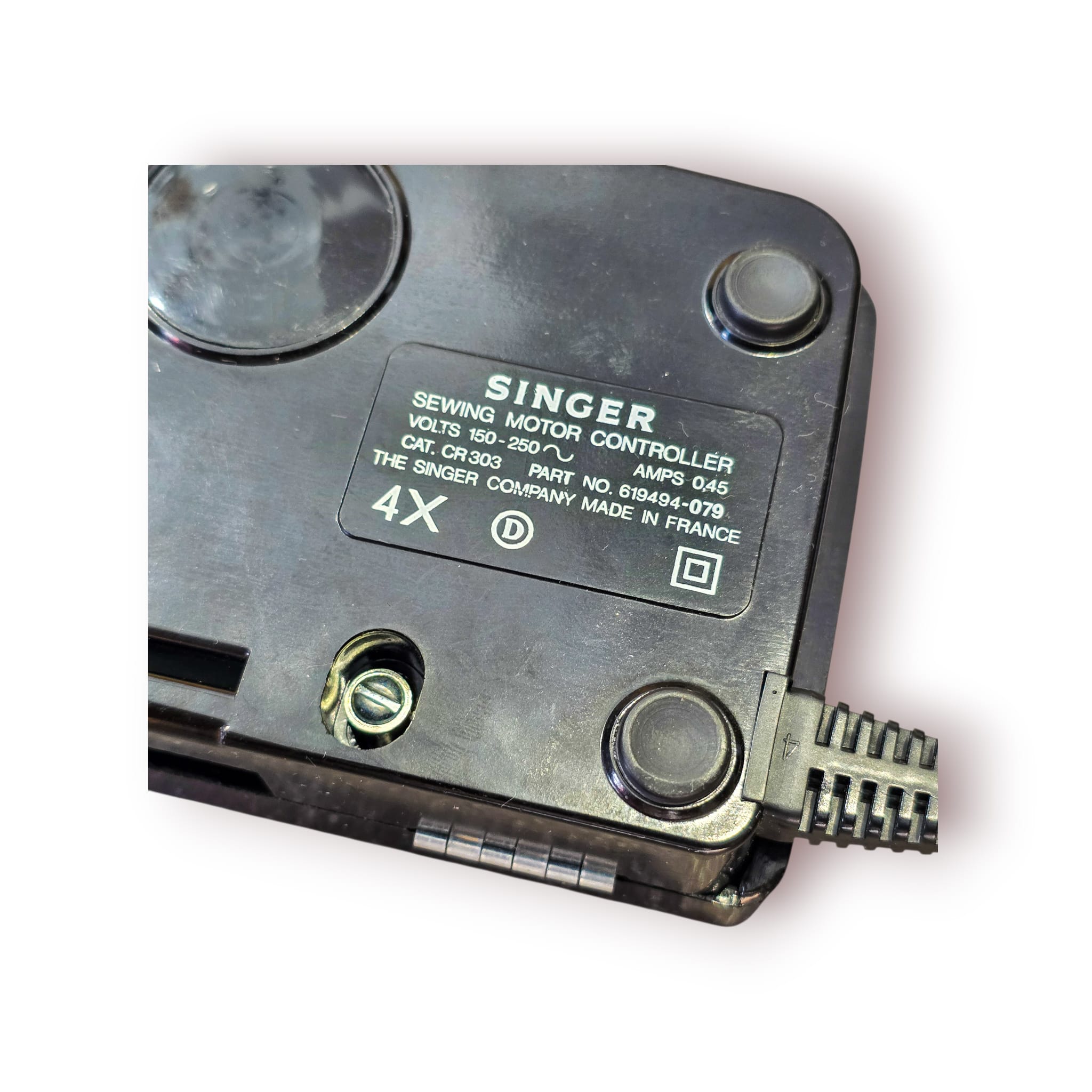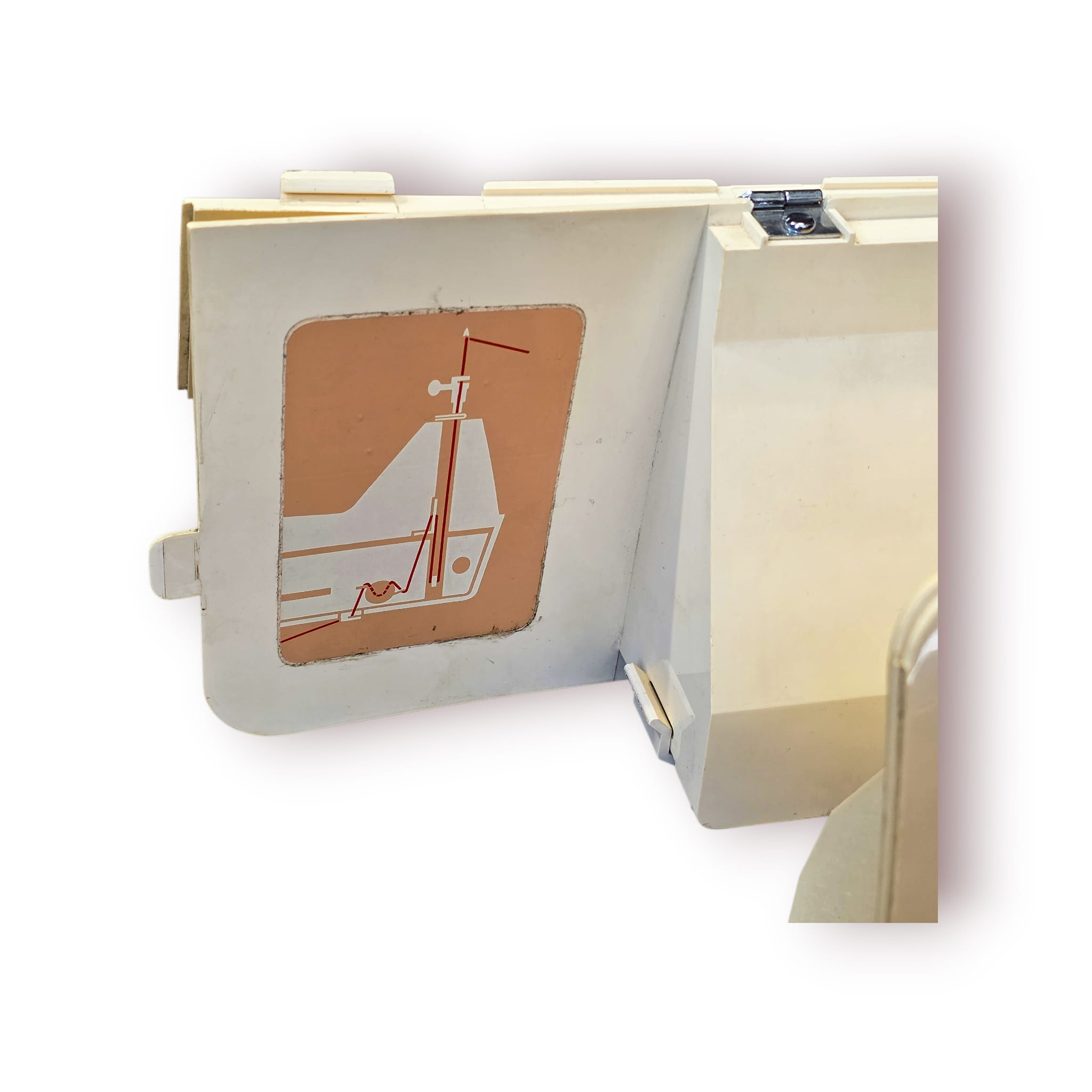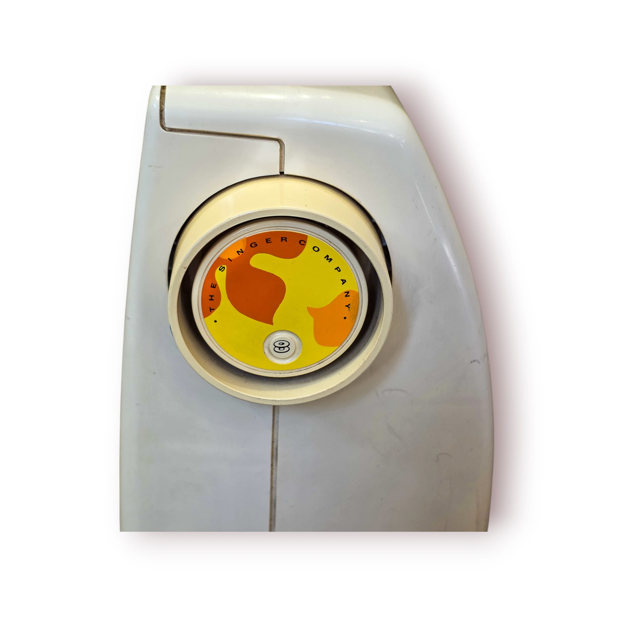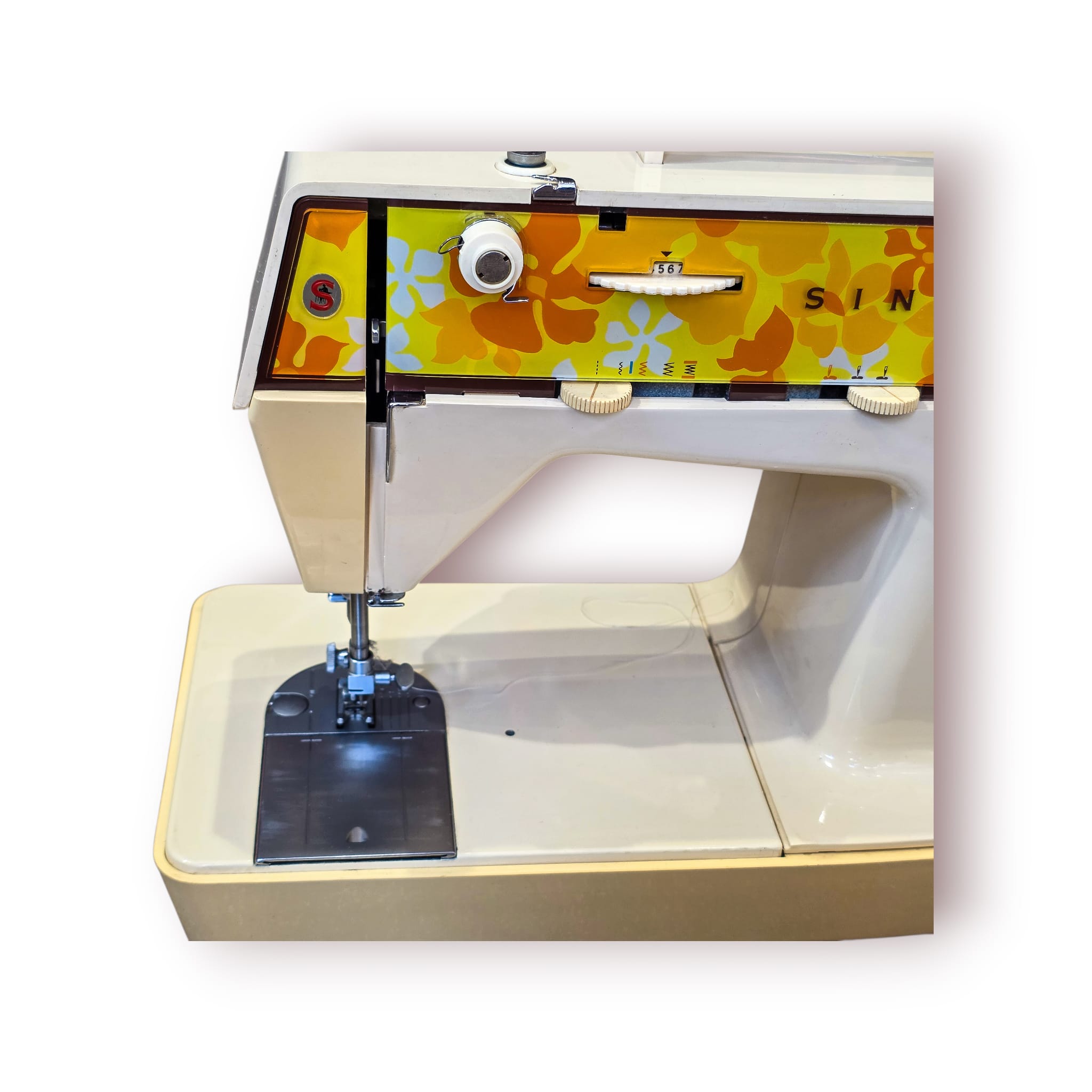 Máquina de costura Singer Starlet 354, um modelo clássico da década de 1970 com design floral característico da época. Produzida em França pela Singer, esta máquina combina robustez mecânica com simplicidade de utilização, sendo ideal tanto para iniciantes como para quem aprecia máquinas vintage de qualidade.