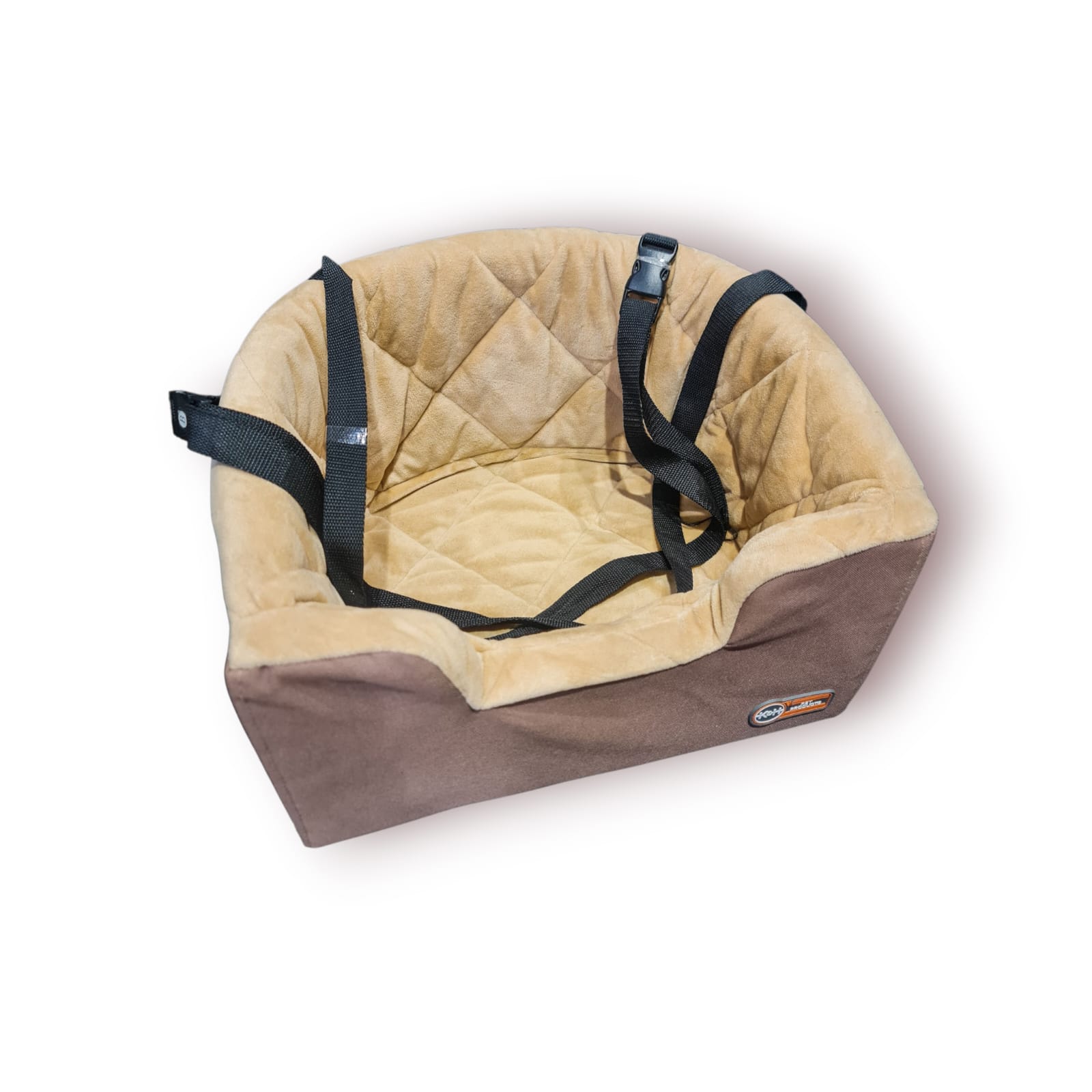 Assento de carro elevado para cães da marca americana K&H Pet Products, ideal para passeios seguros e confortáveis. O design tipo “bucket” mantém o animal estável e com boa visibilidade durante a viagem. O interior em tecido macio e acolchoado proporciona conforto extra, enquanto as duas fitas com fecho ajustável garantem segurança e fixação adequada ao cinto de segurança do veículo.