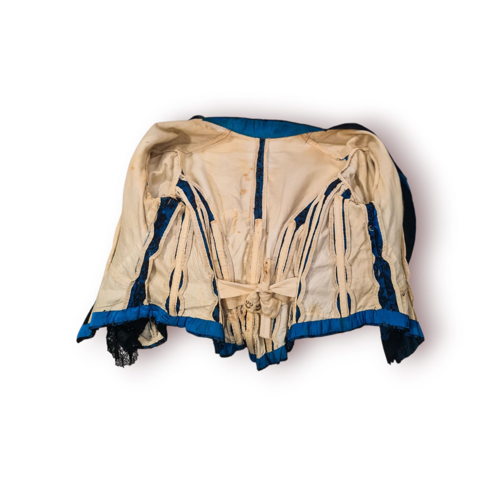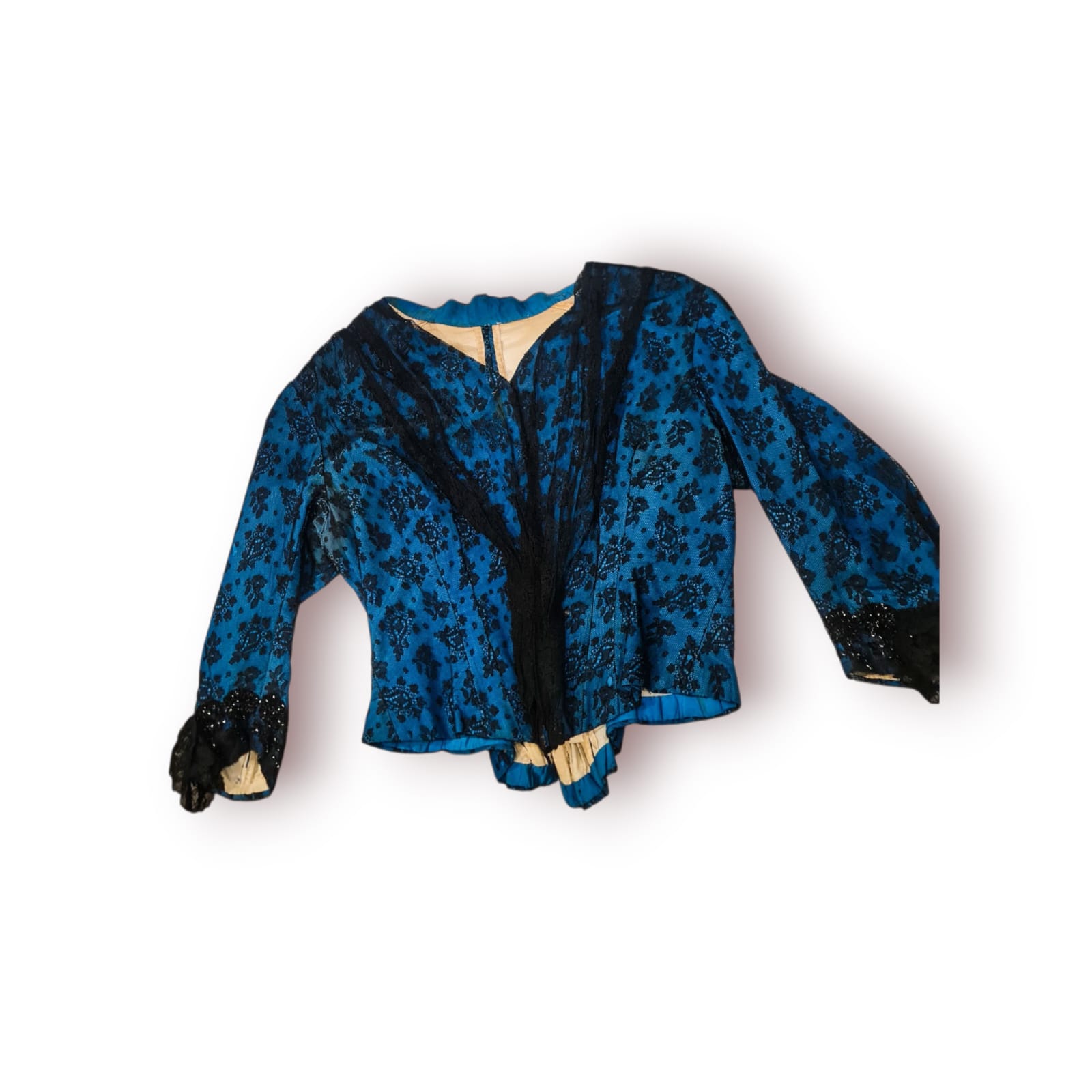 Blusa Antiga Senhora (c. 1890-1920) – Azul com Renda e Vidrilhos | Peça Histórica de Coleção