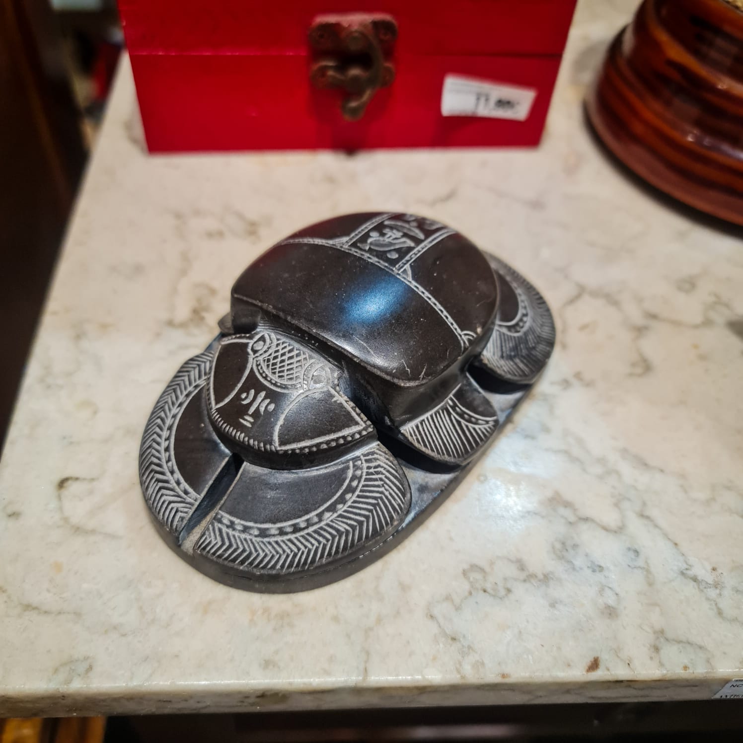 Escaravelho Egípcio em Pedra – Peça Ritual com Hieróglifos Gravados