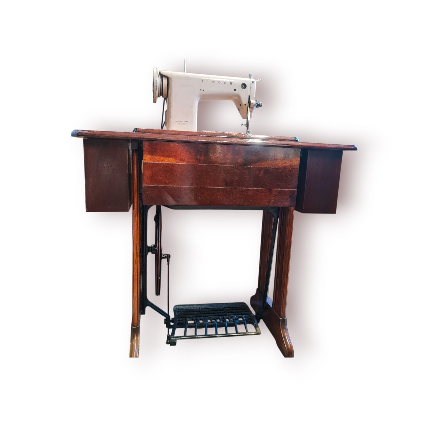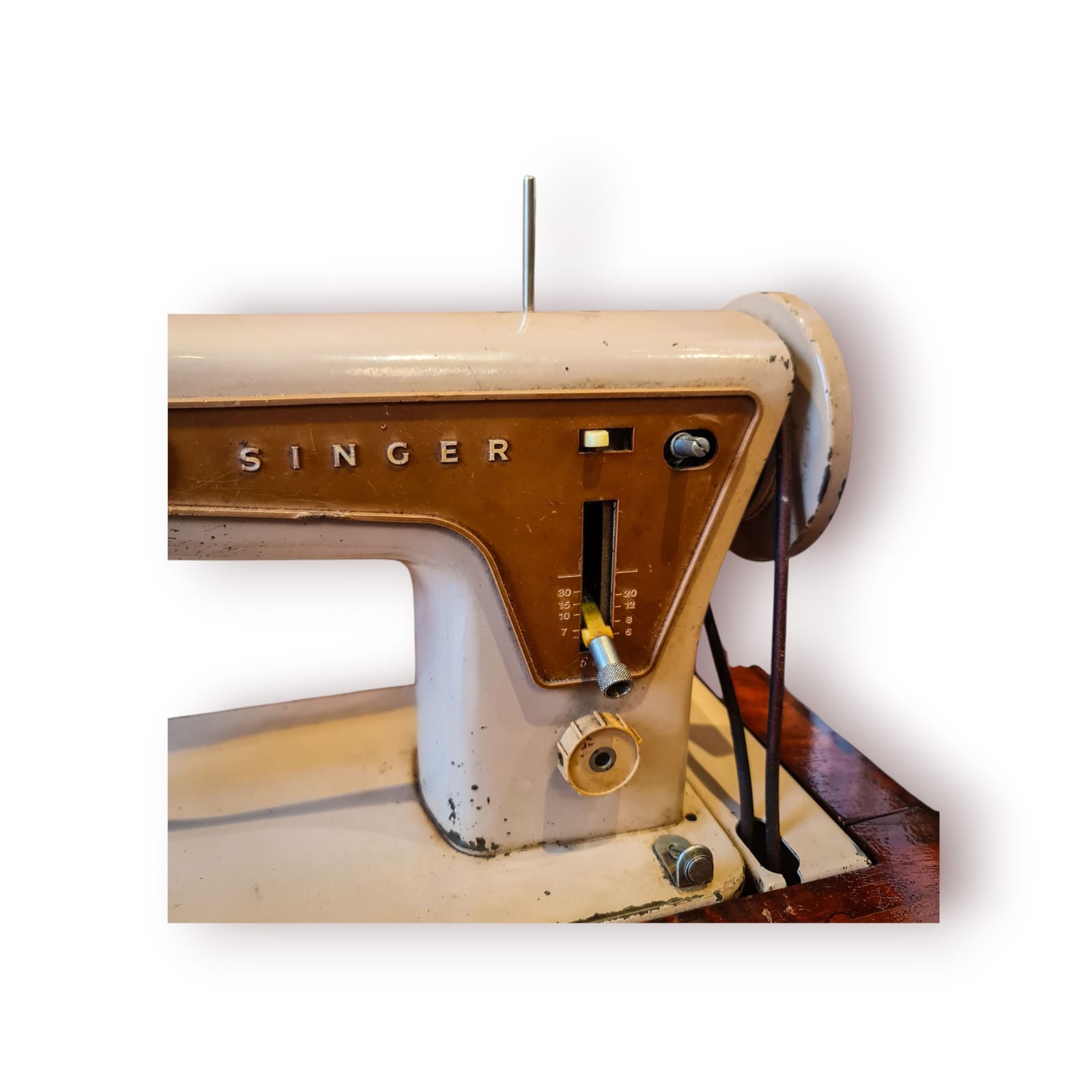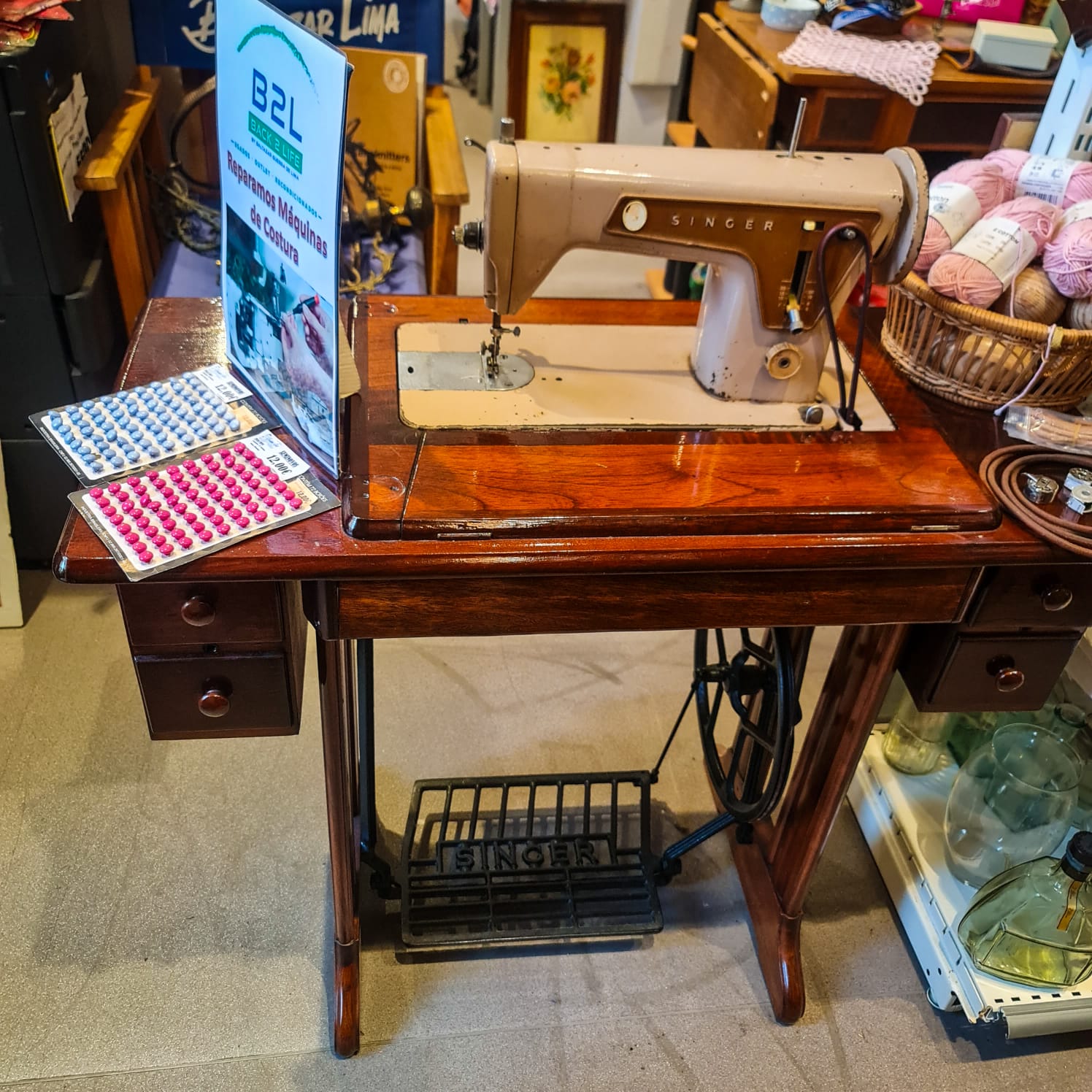 Peça icónica da marca SINGER, fabricada pela The Singer Company – Indústria Brasileira, esta máquina de costura combina robustez mecânica e charme vintage.