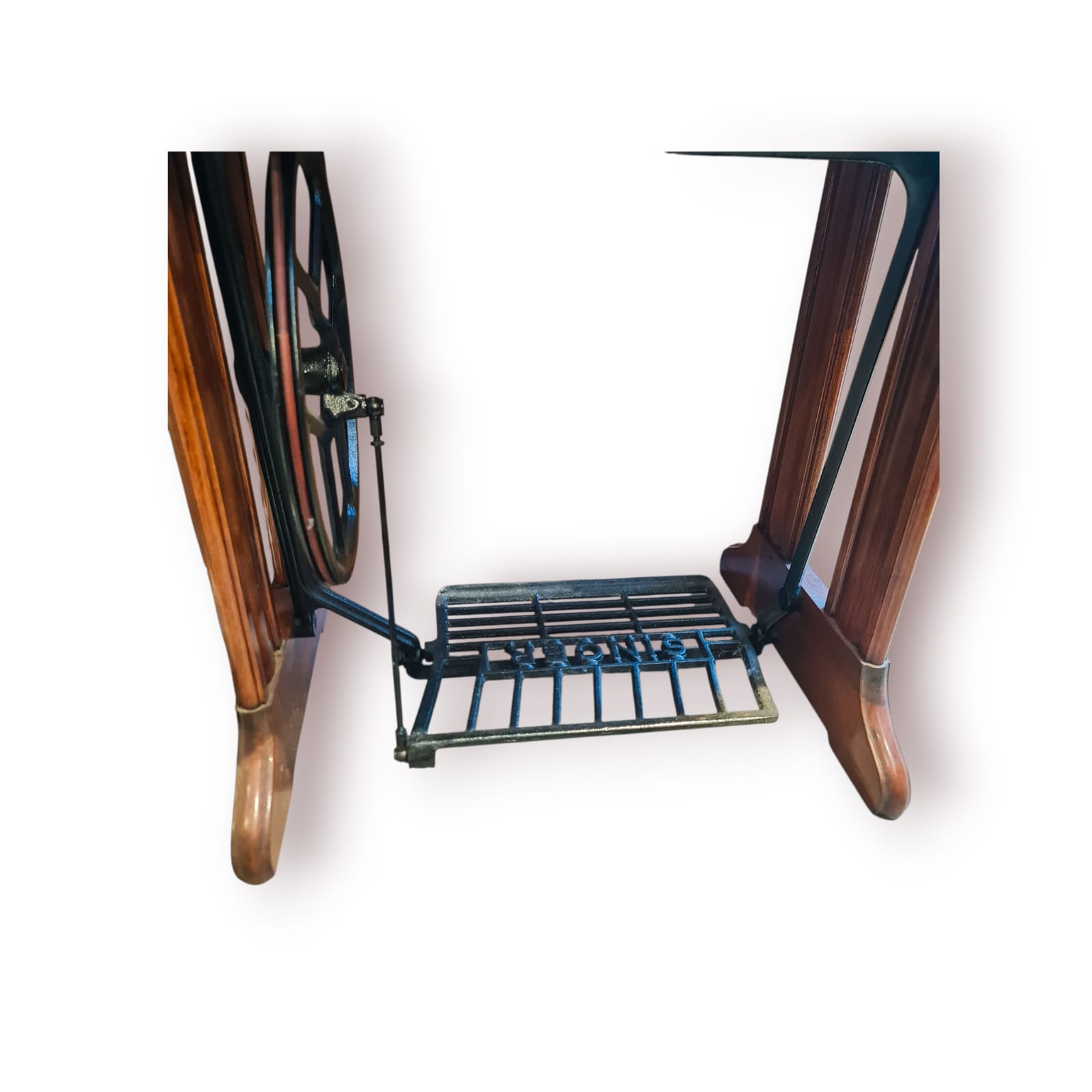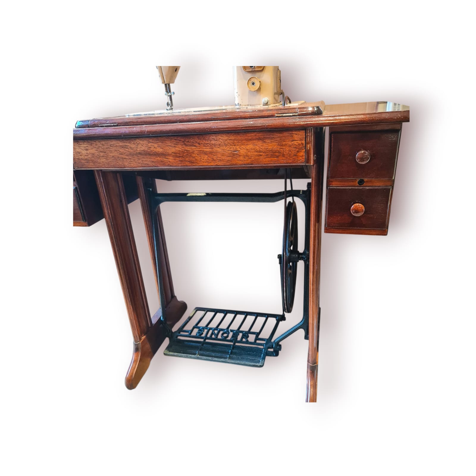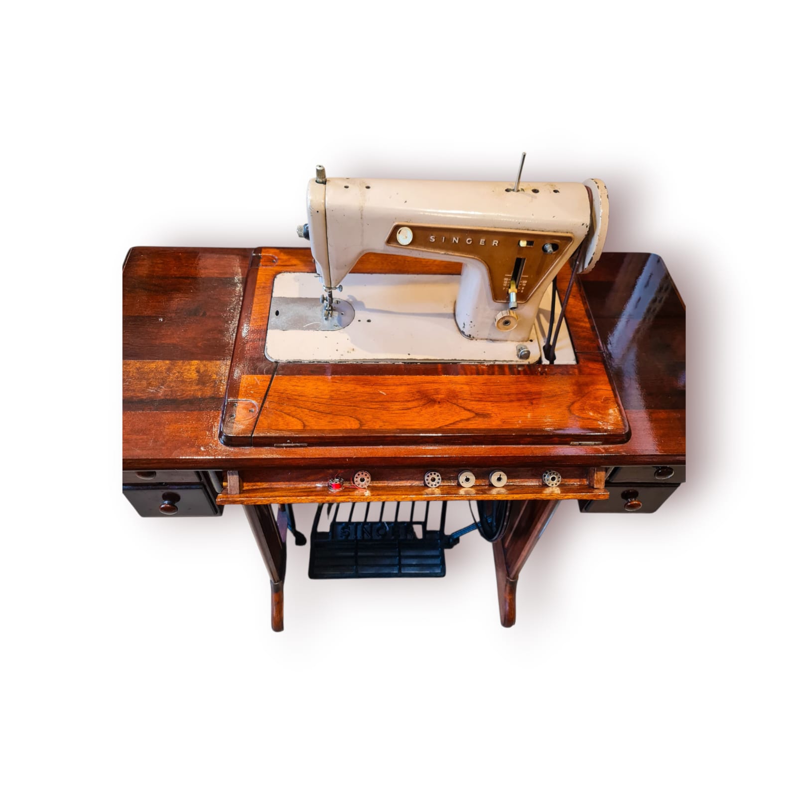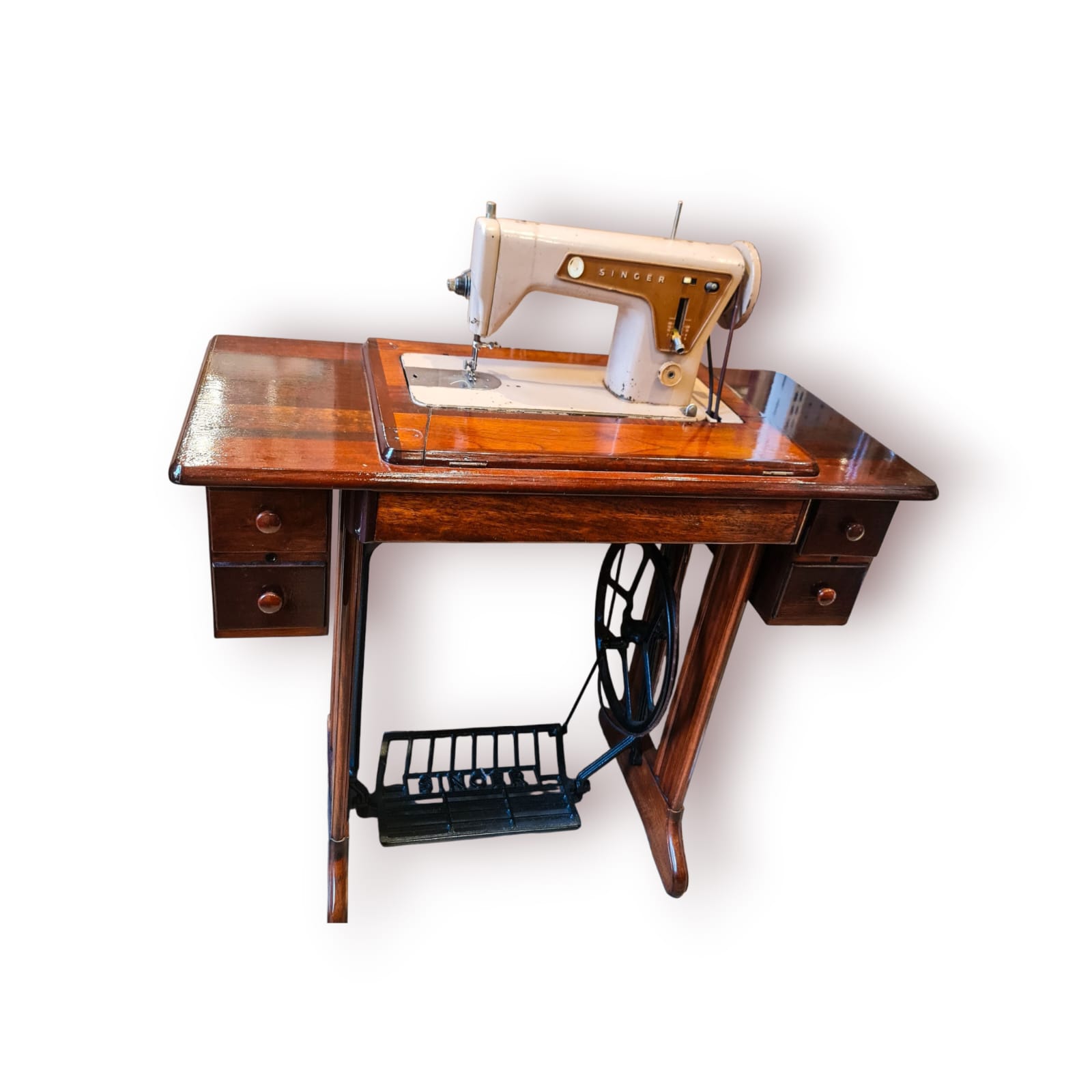 Peça icónica da marca SINGER, fabricada pela The Singer Company – Indústria Brasileira, esta máquina de costura combina robustez mecânica e charme vintage.