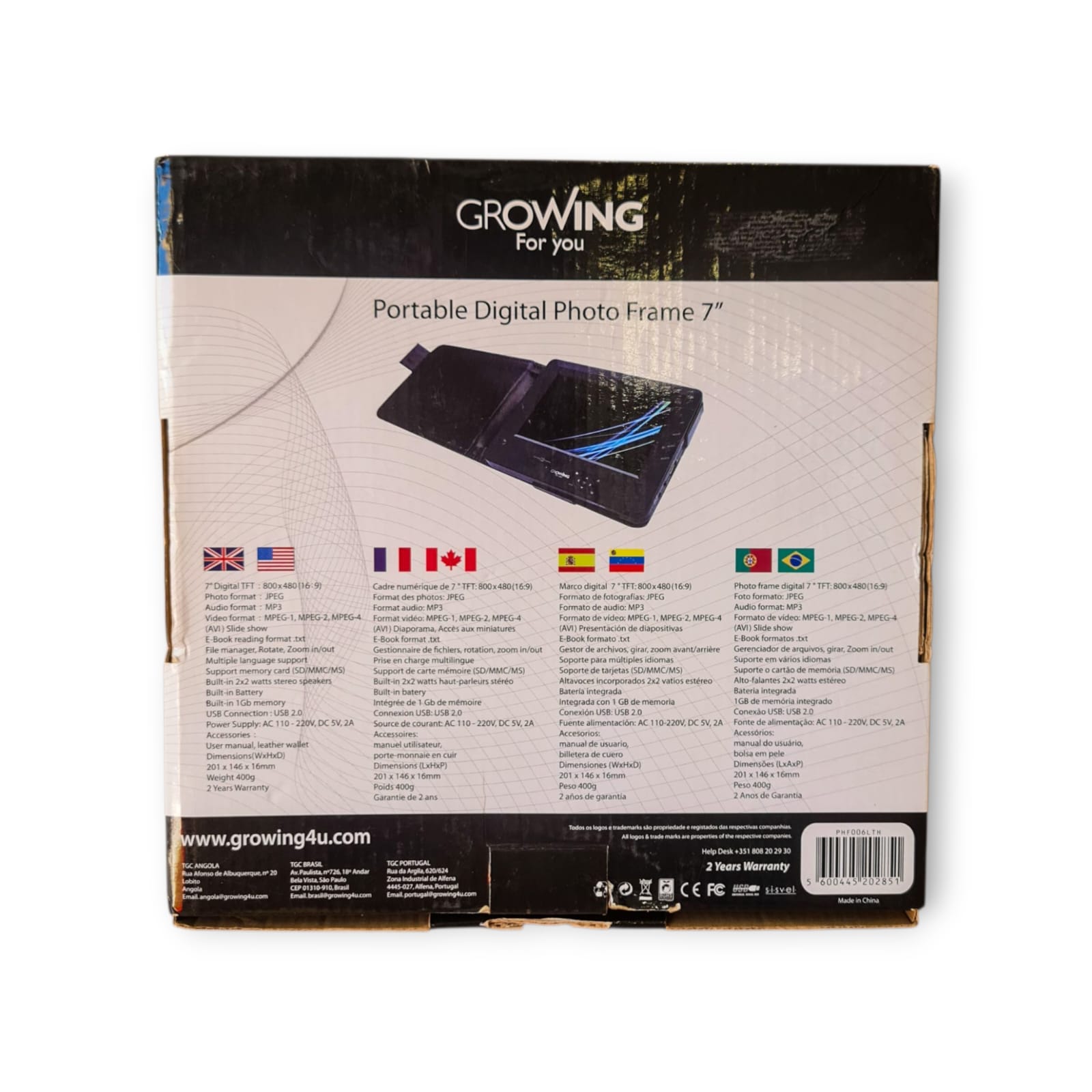 Moldura Digital Portátil Growing For You 7” – 1GB, E-book, Música, Vídeo e Foto