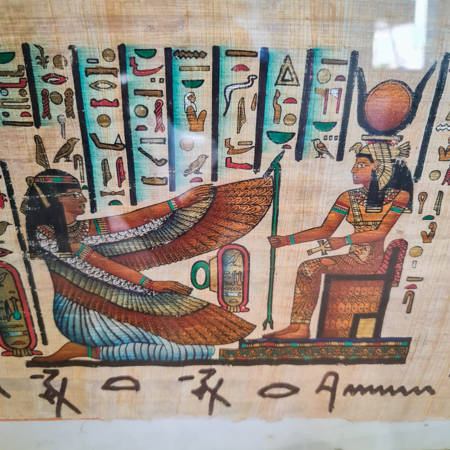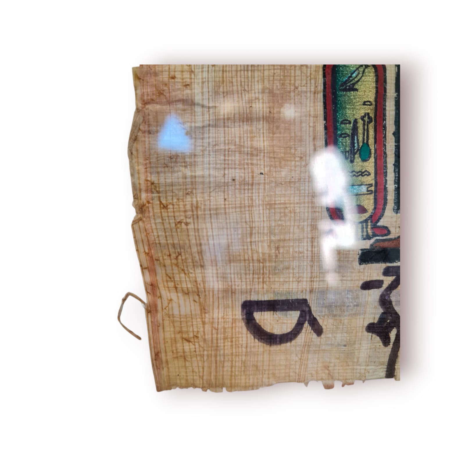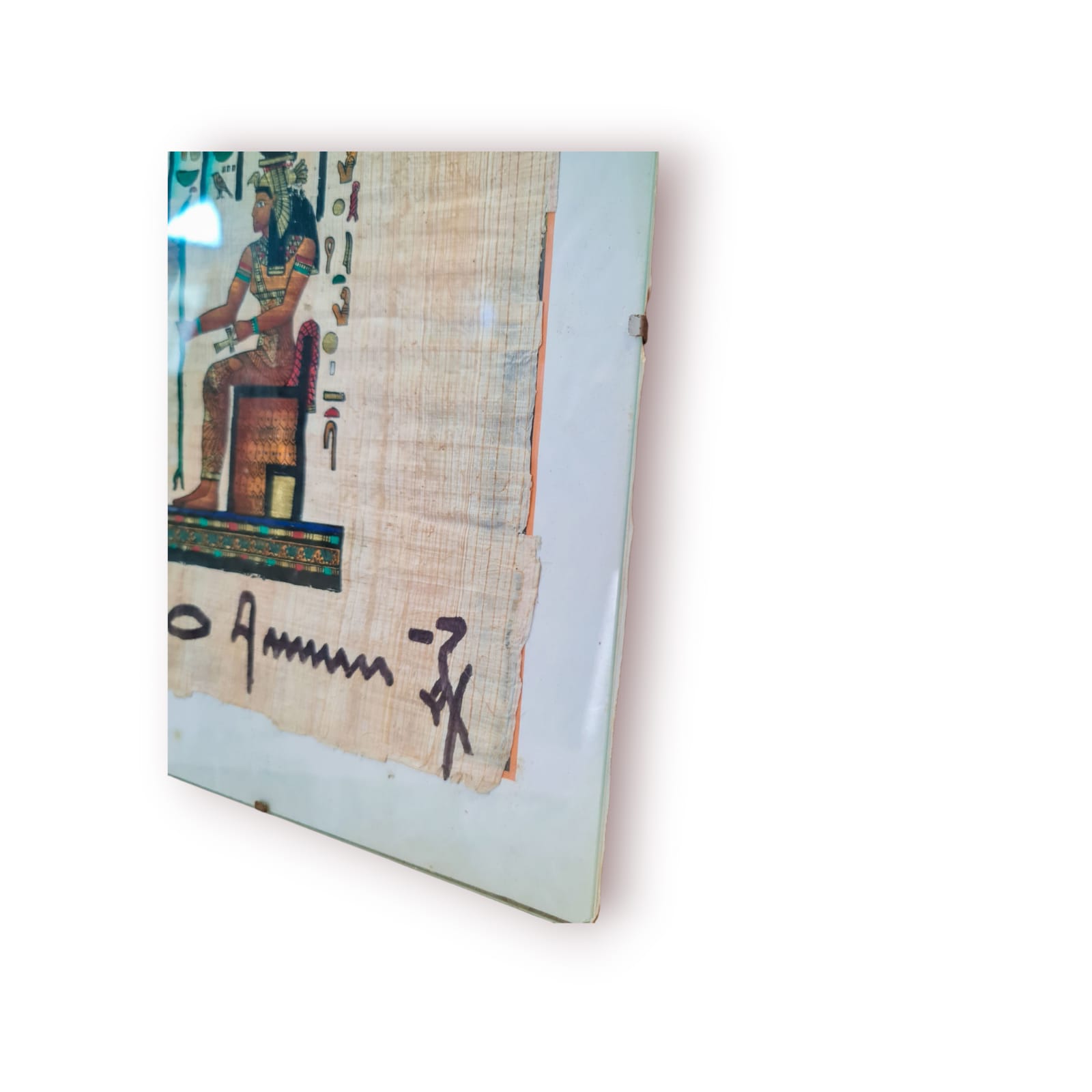 Trata-se de um papiro artesanal autêntico, montado em moldura simples com vidro protetor.