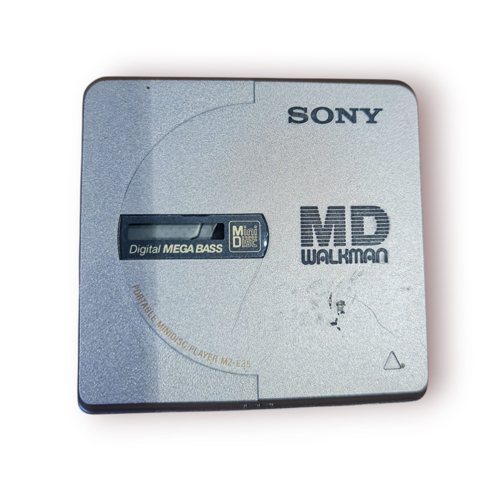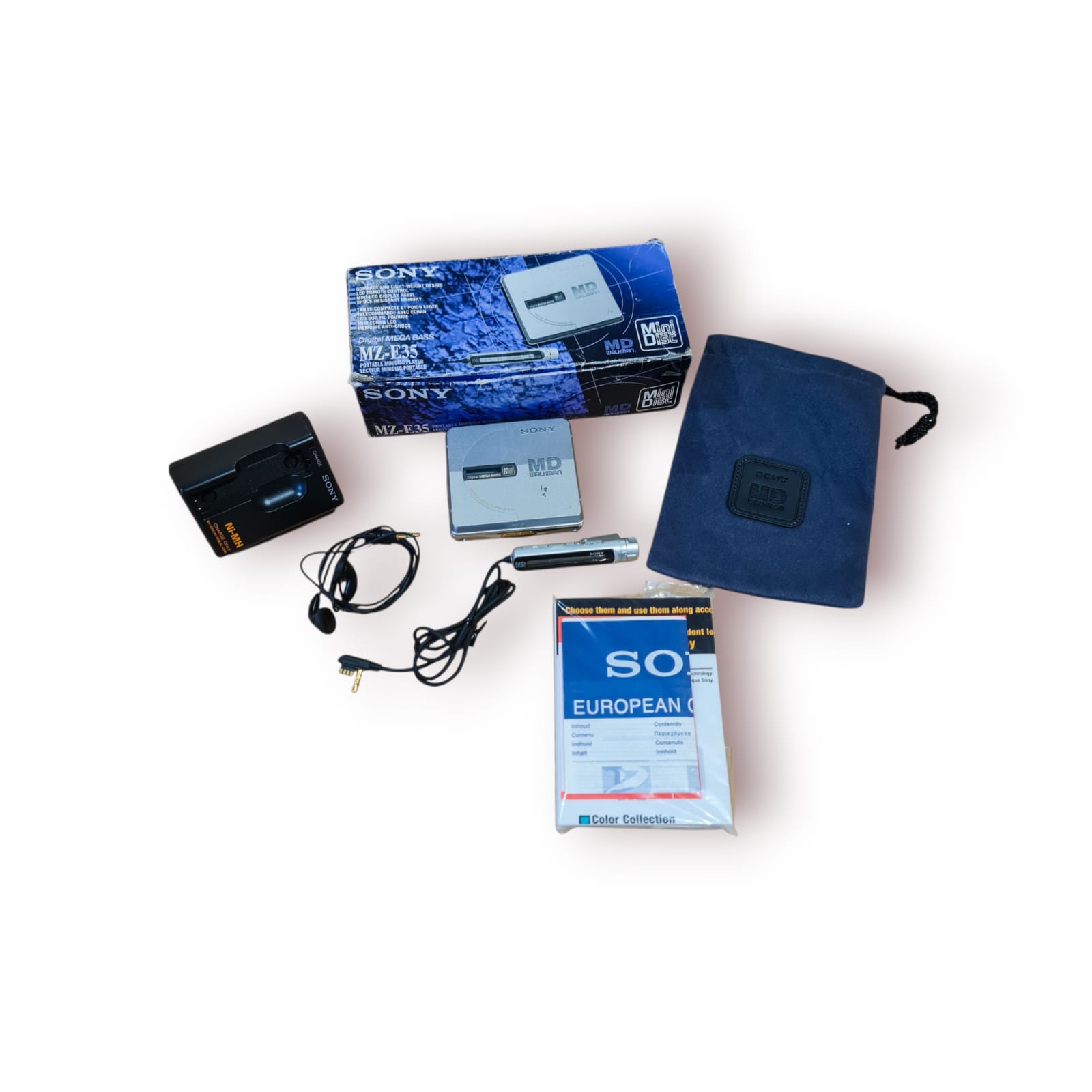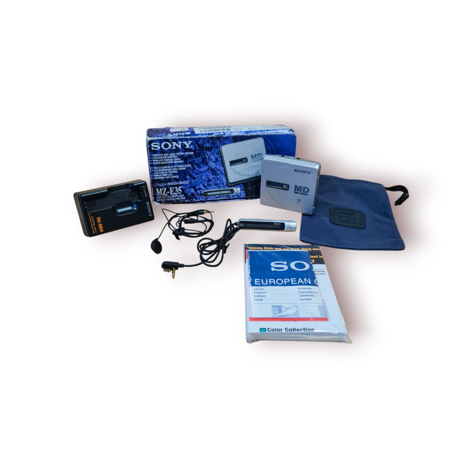 Sony MD Walkman MZ-E35 – MiniDisc Player c/ Mega Bass – Anos 90 – Completo c/ Acessórios e Caixa Original