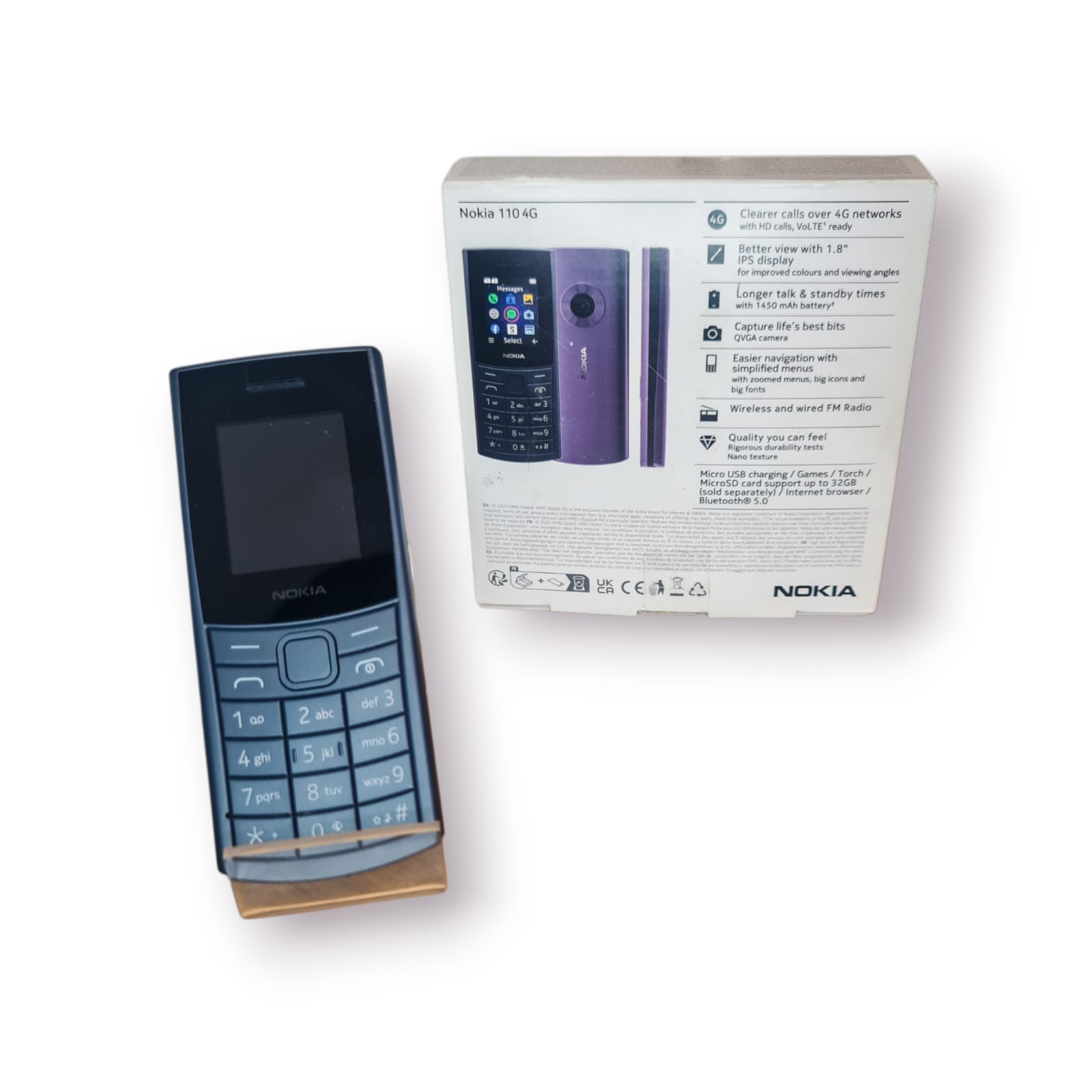 Compacto, robusto e com funcionalidades essenciais, o Nokia 110 4G é perfeito para quem procura um telemóvel simples, funcional e com excelente autonomia. Ideal para seniores ou como segundo telefone, este modelo garante chamadas nítidas em redes 4G e traz ainda rádio FM, lanterna e câmara integrada. Inclui caixa original e carregador.
