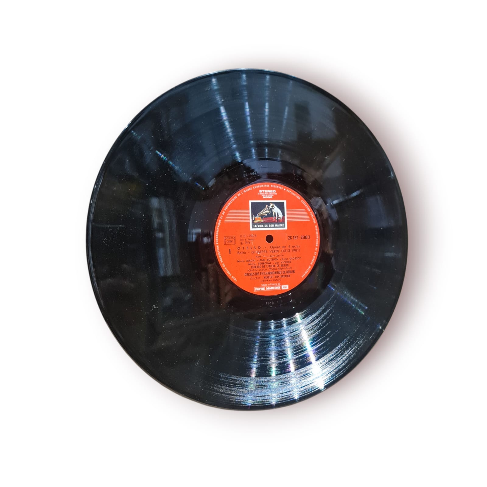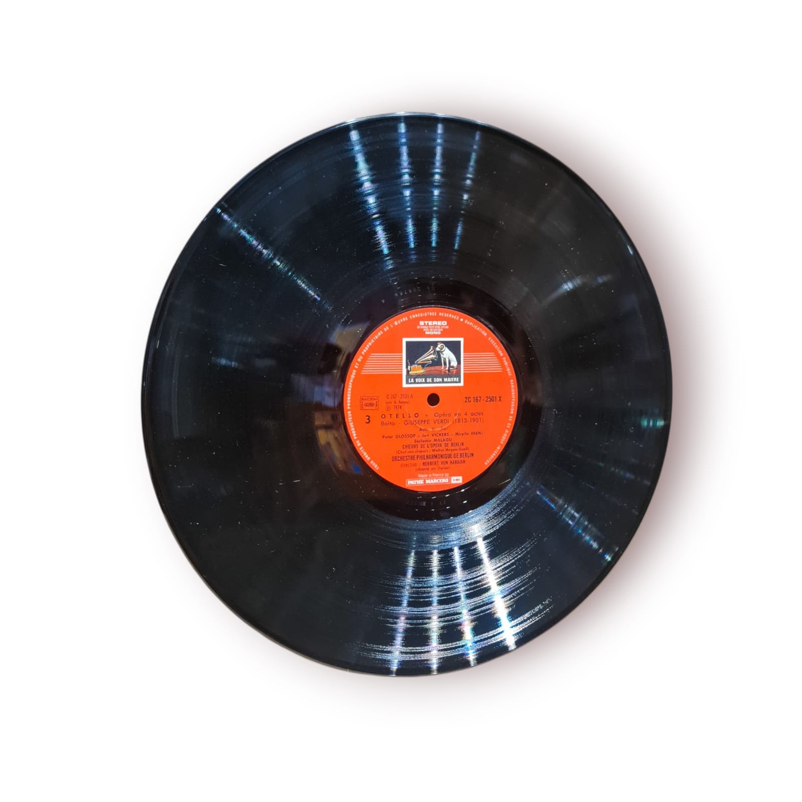 Edição original tripla em vinil da monumental gravação de “Otello”, ópera de Giuseppe Verdi, sob a regência do lendário Herbert von Karajan, com a participação da Orquestra Filarmónica de Berlim e do Coro da Deutsche Oper Berlin.